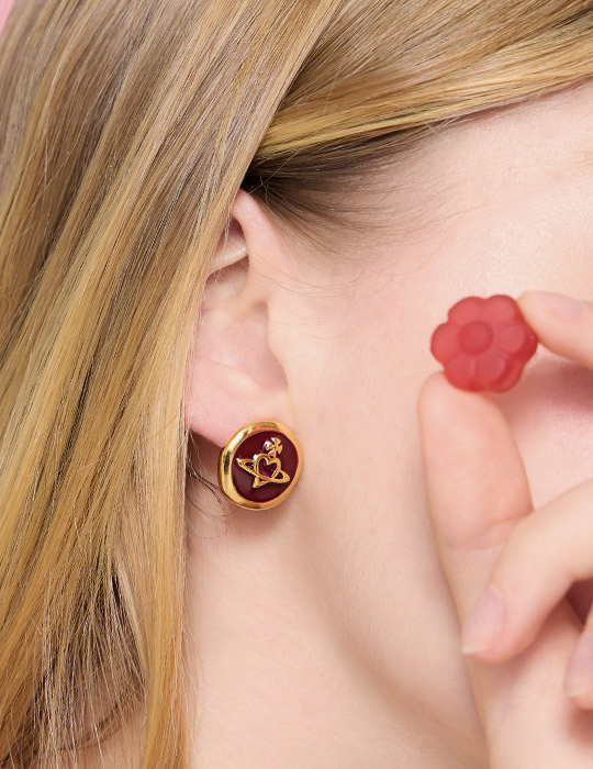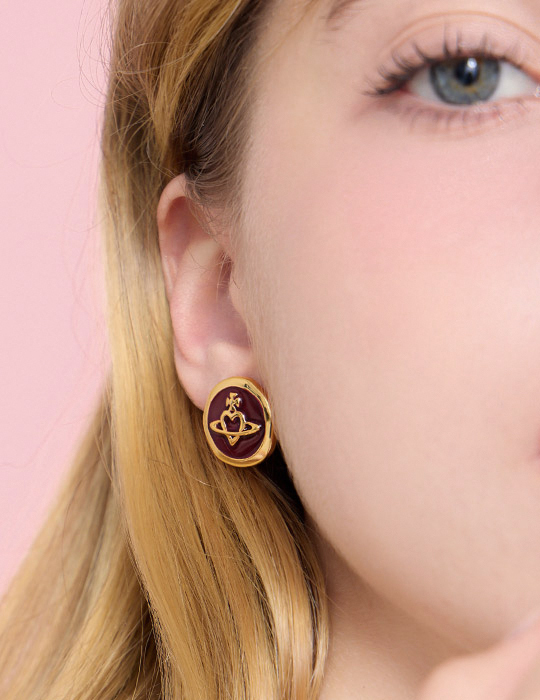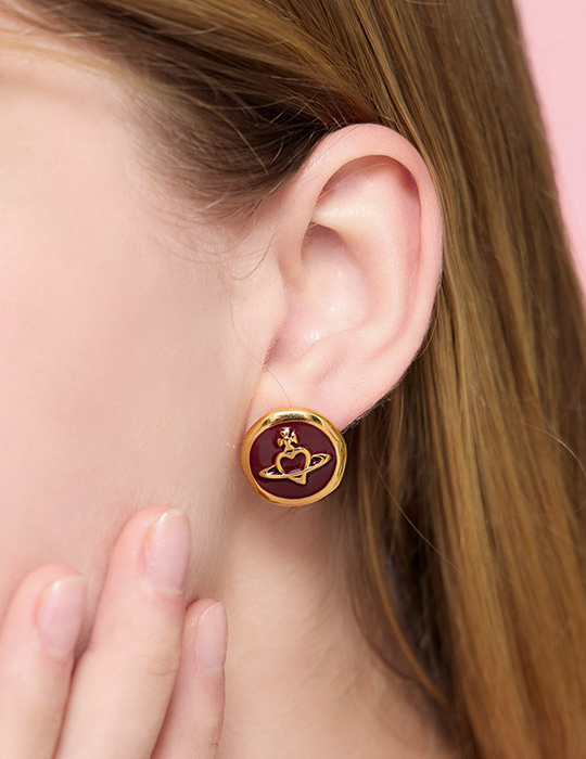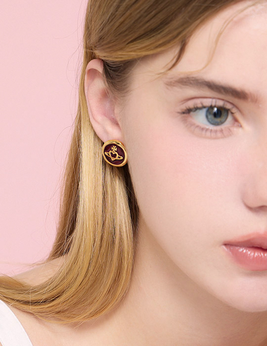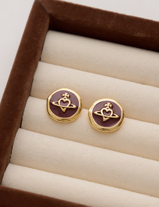 氣質金屬滴釉星球。針式耳環(酒红)