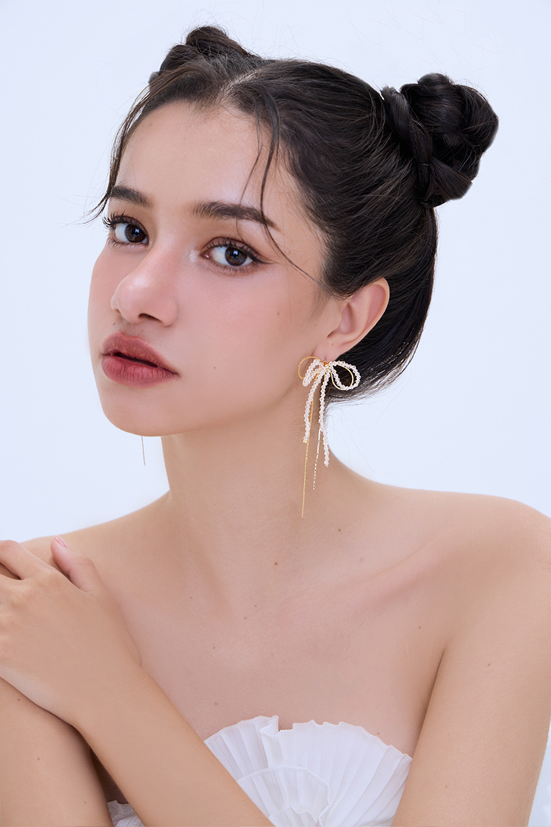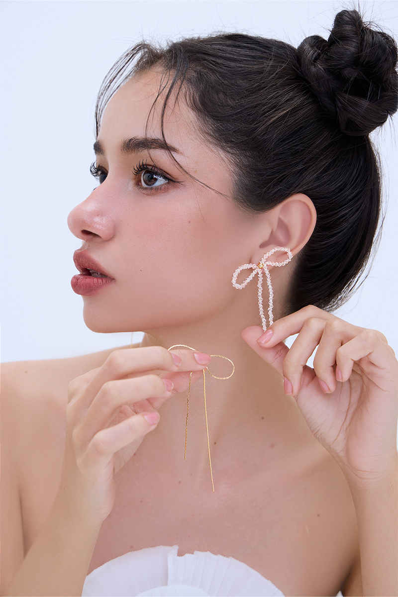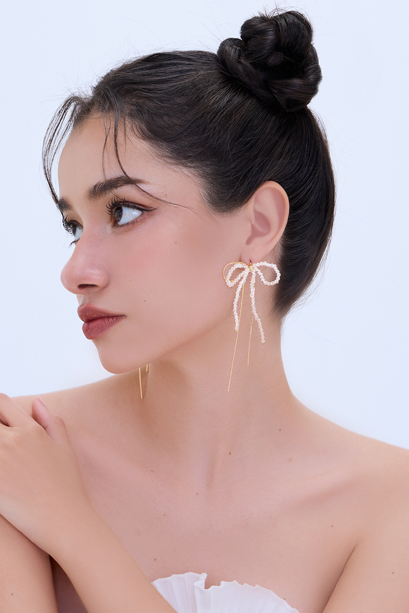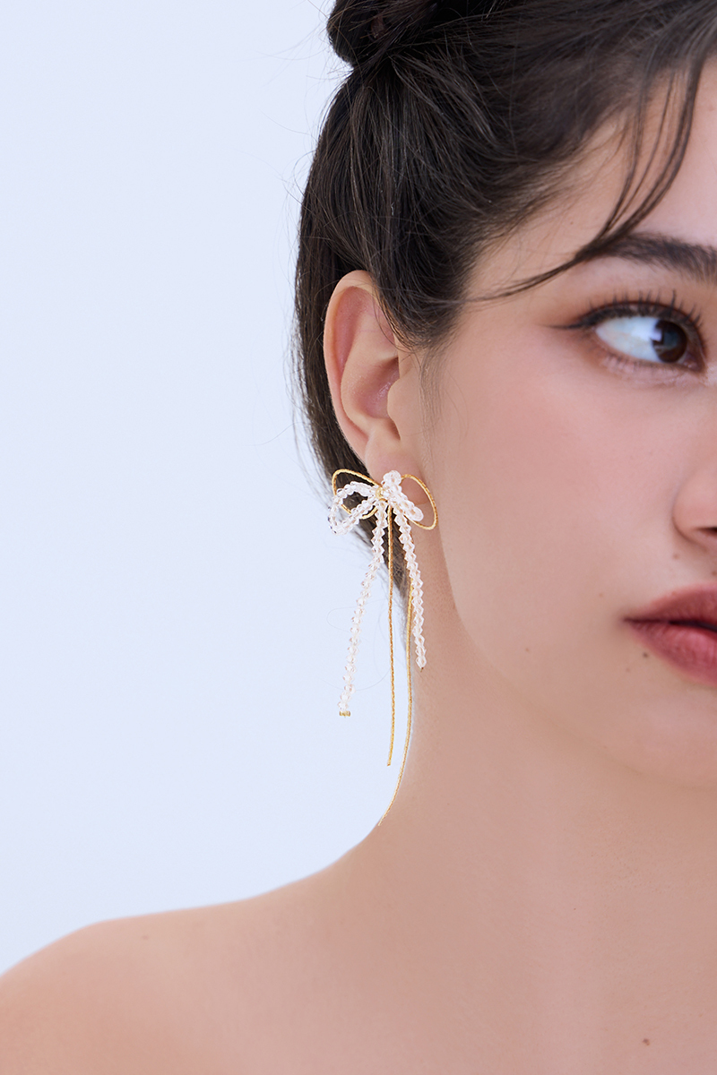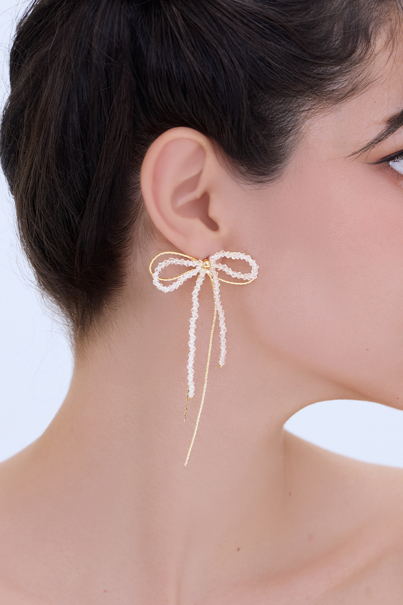 商品名稱: 水晶串珠蝴蝶結。銀針耳環