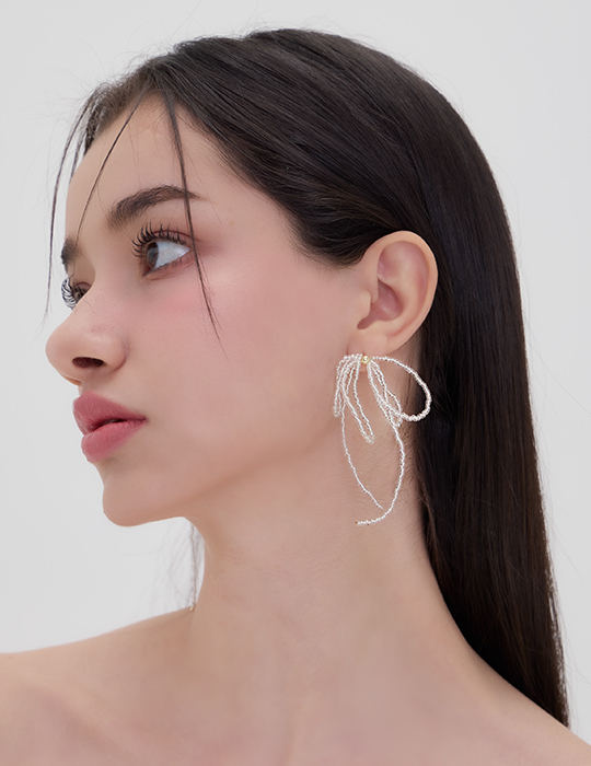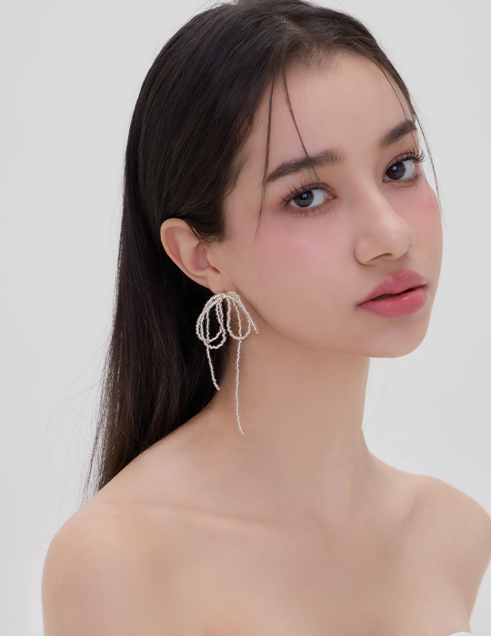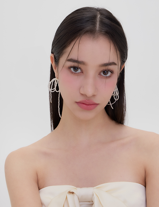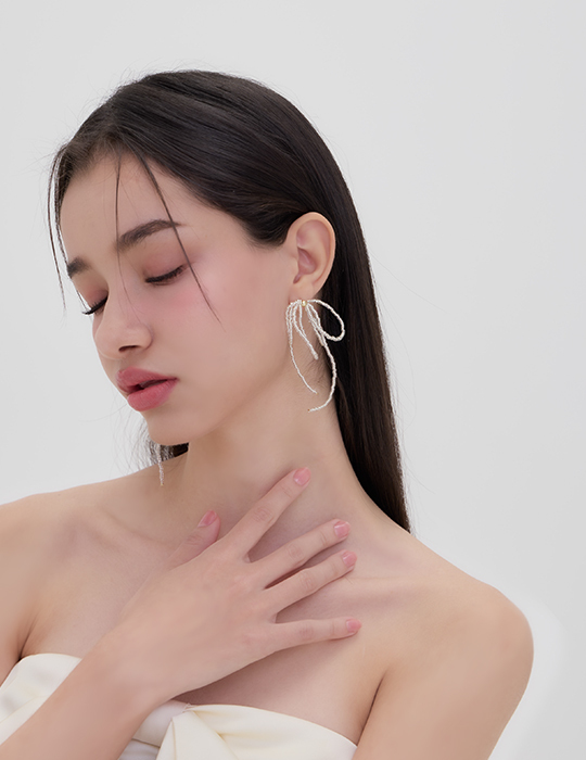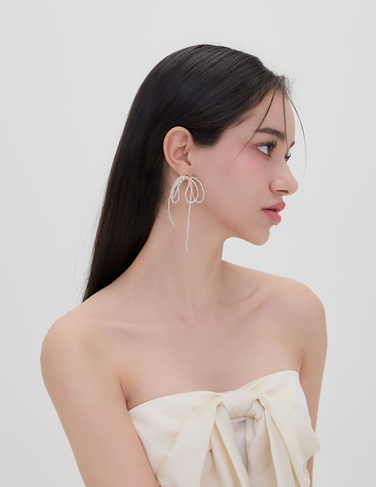商品名稱:水晶流蘇蝴蝶結。銀針耳環