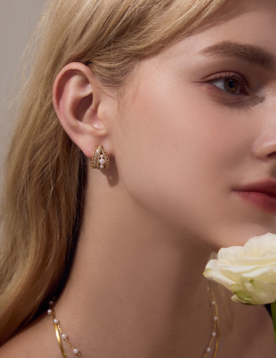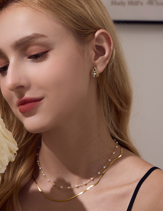 商品材質:16K金電鍍鈦鋼/手工珍珠/鋯石