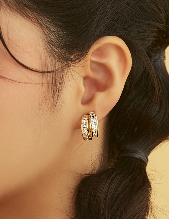 水鑽C字交疊。夾式耳環
