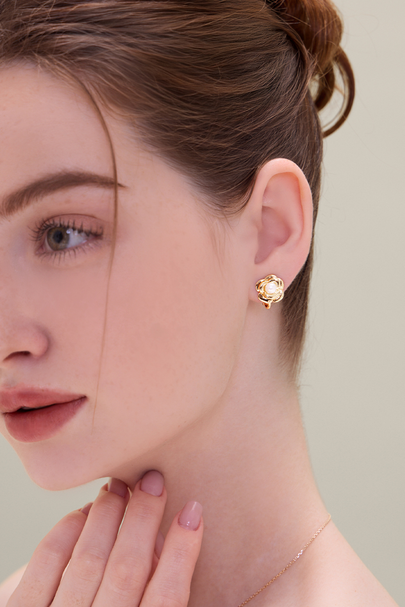 商品名稱: 法式優雅金屬珍珠花朵。夾式耳環(金)