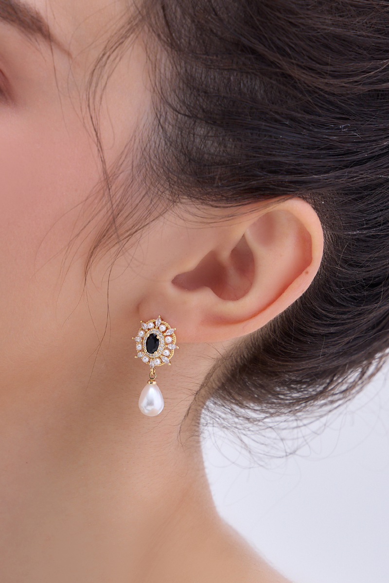 商品名稱:法式宮廷黑鑽心。夾式耳環