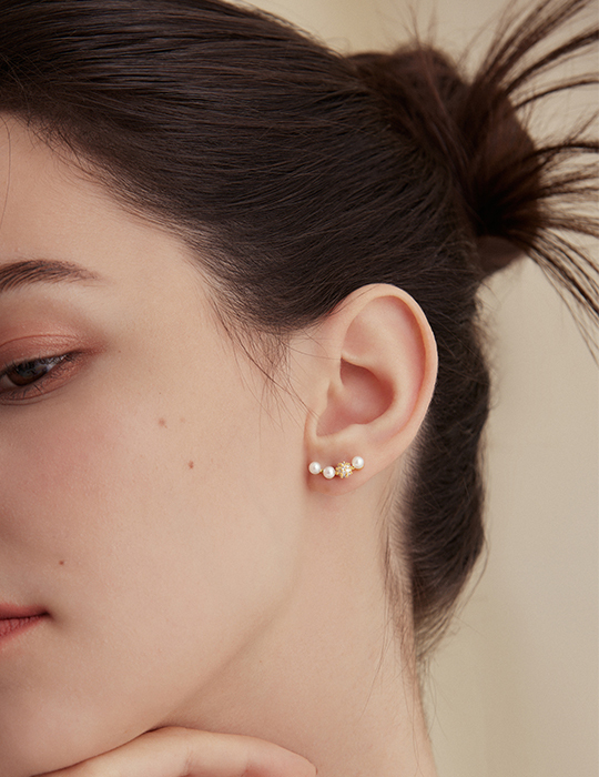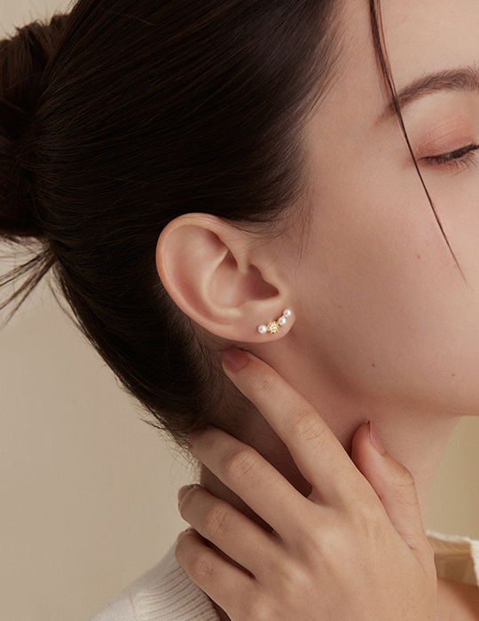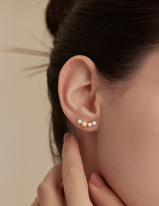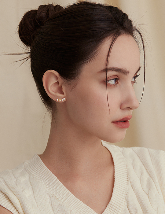 法式微笑珍珠。針式耳環