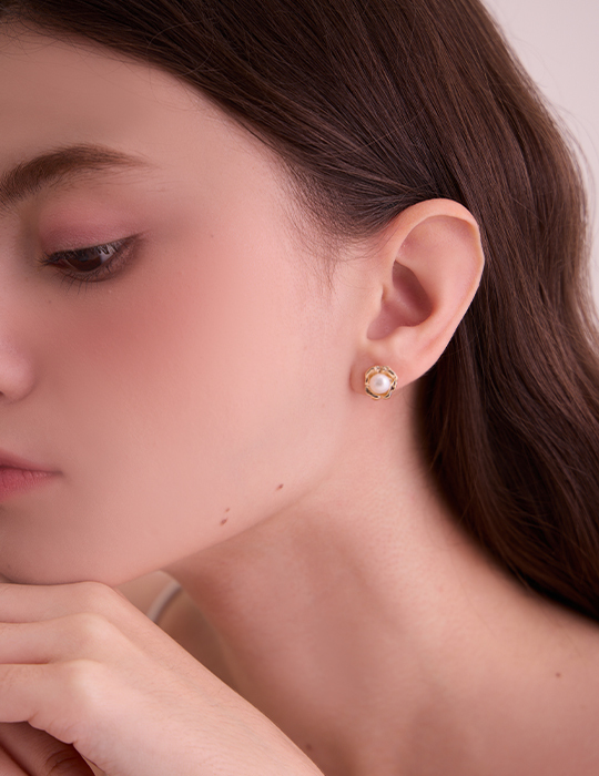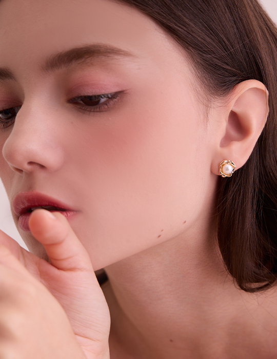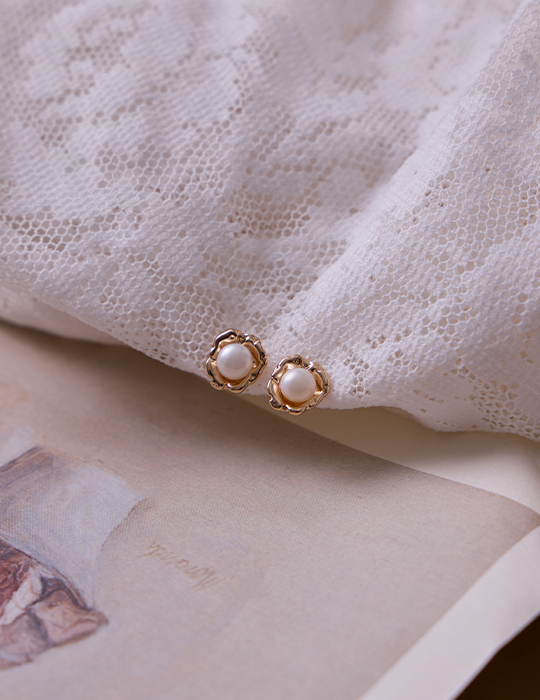 商品名稱:法式質感皺褶珍珠。銀針耳環