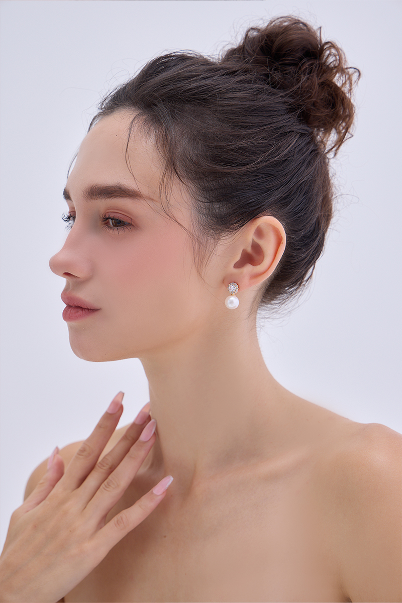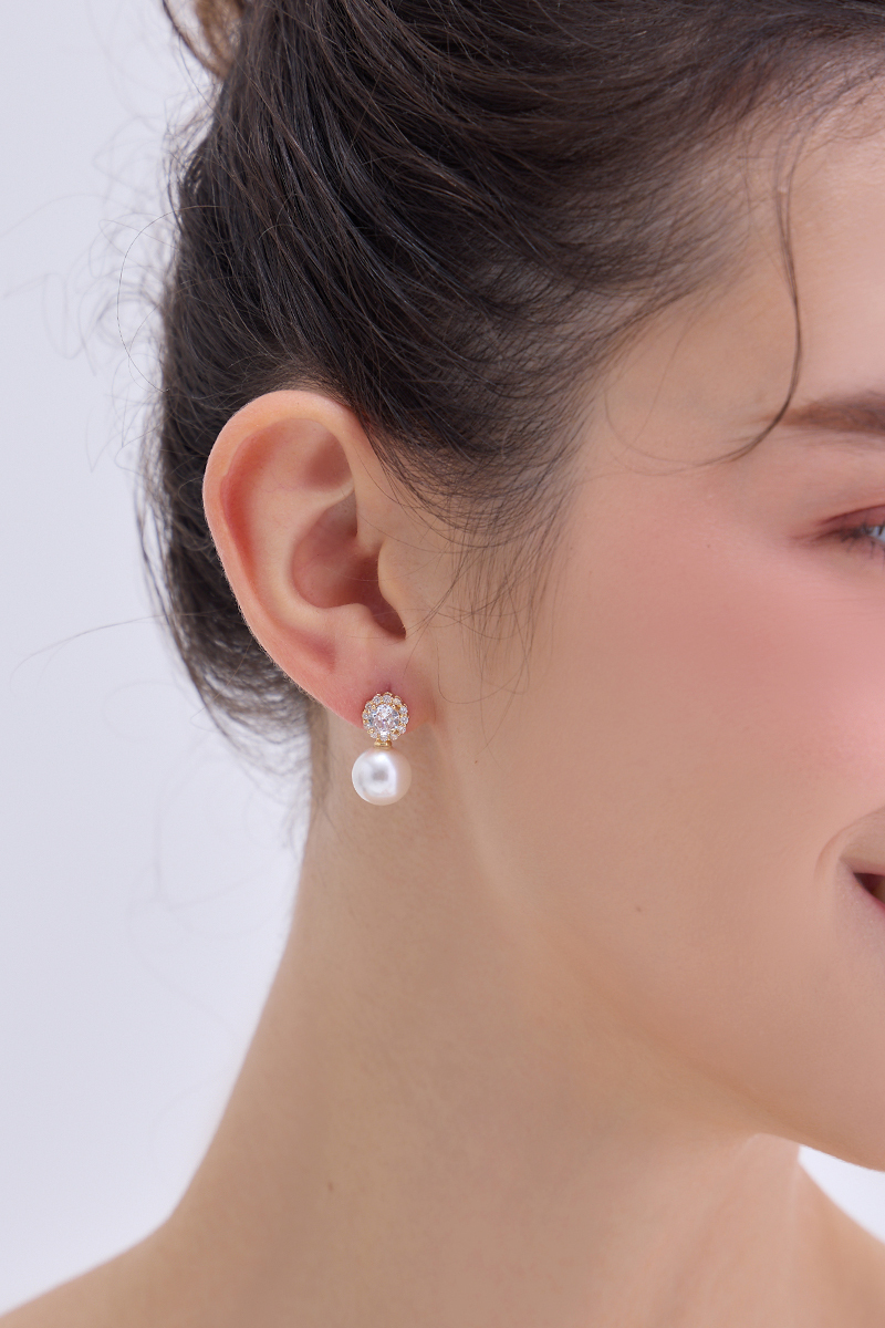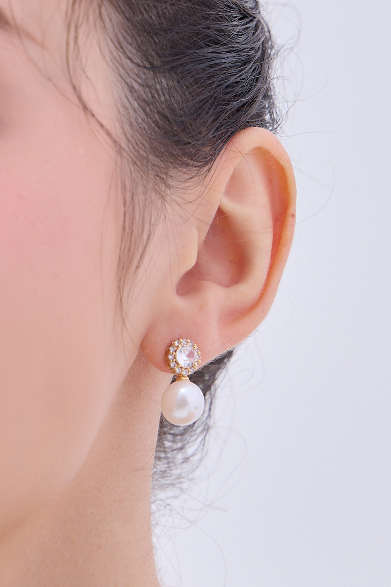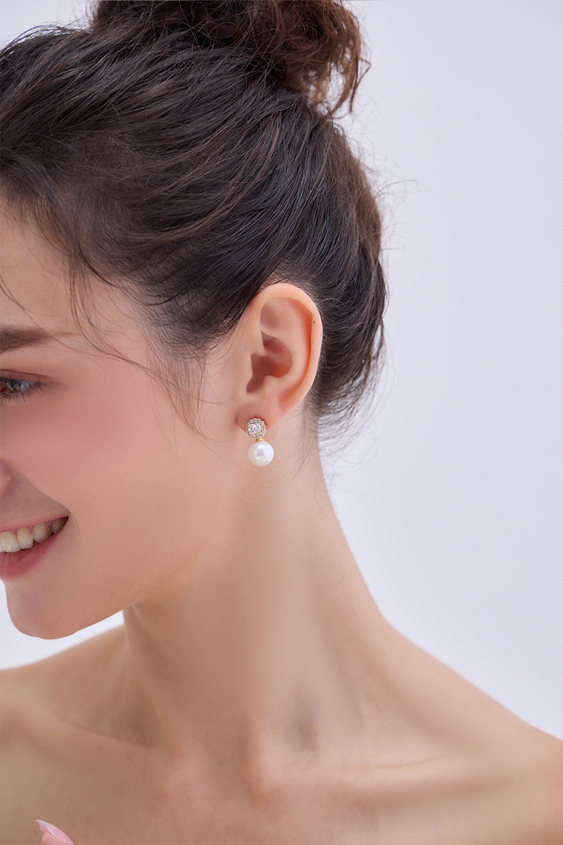 材質:14K金電鍍銅/鑲鋯石/珍珠