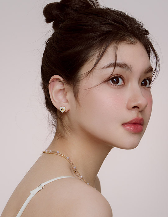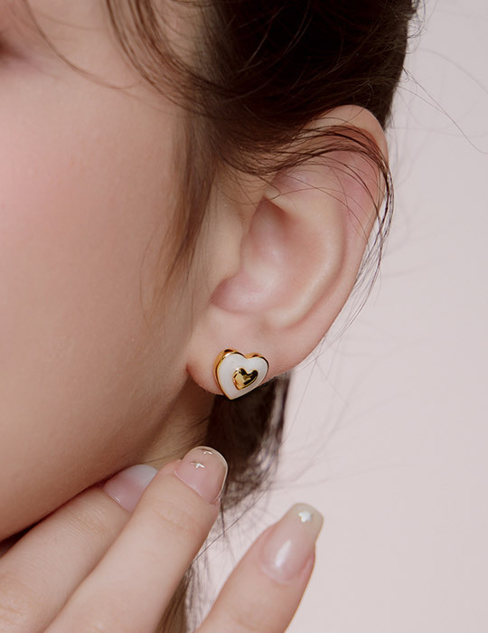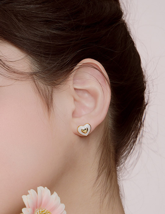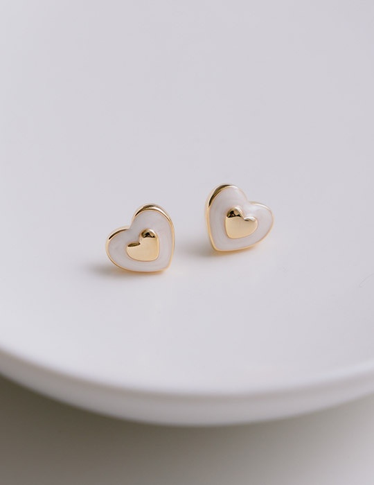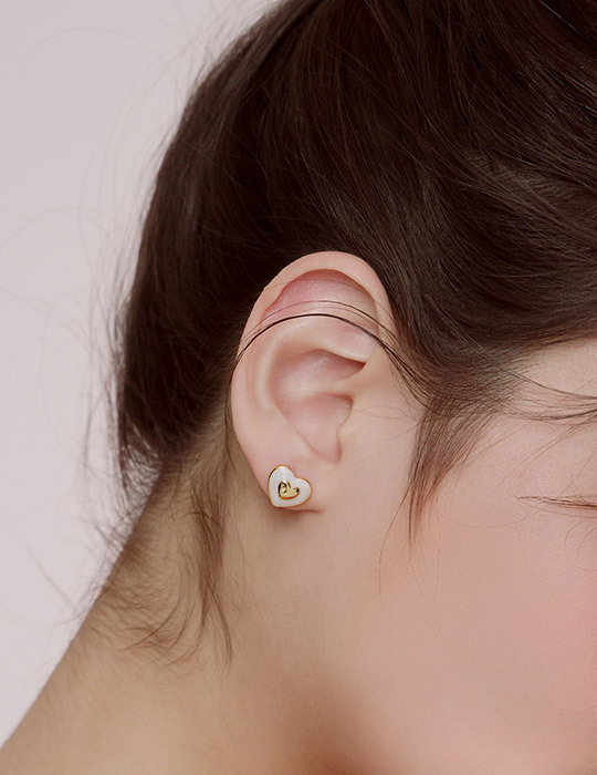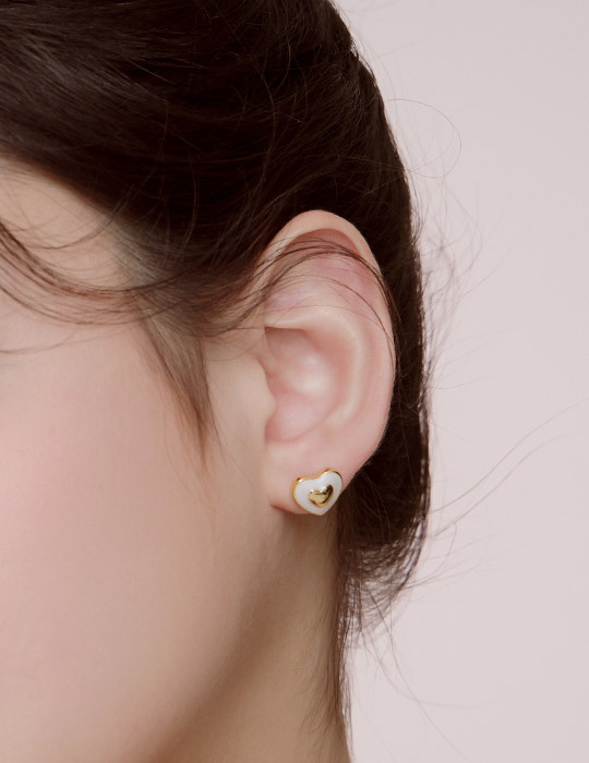 浪漫雙層愛心滴釉。夾式耳環(珠光白)
