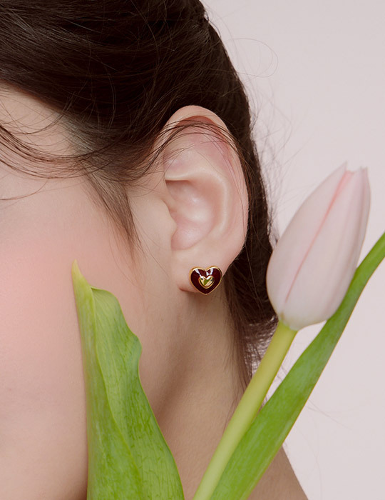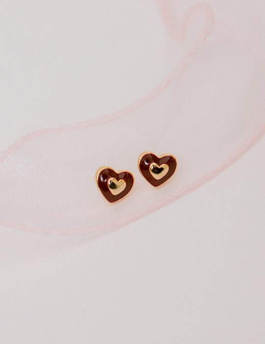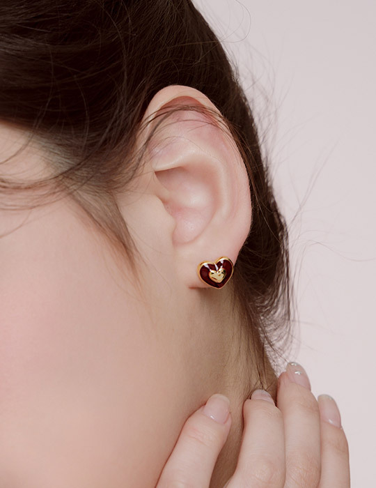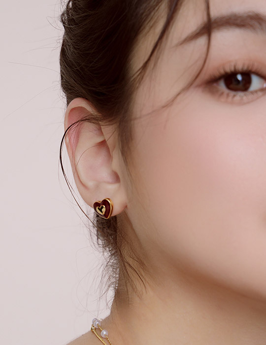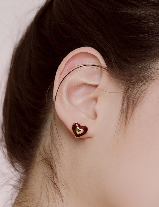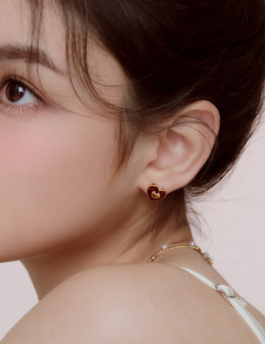 浪漫雙層愛心滴釉。針式耳環(酒红)