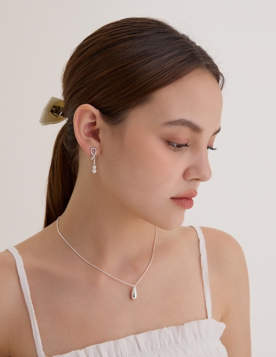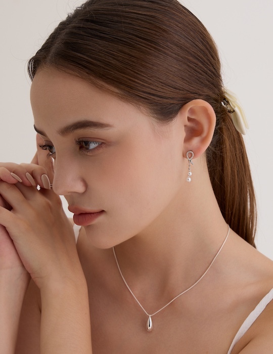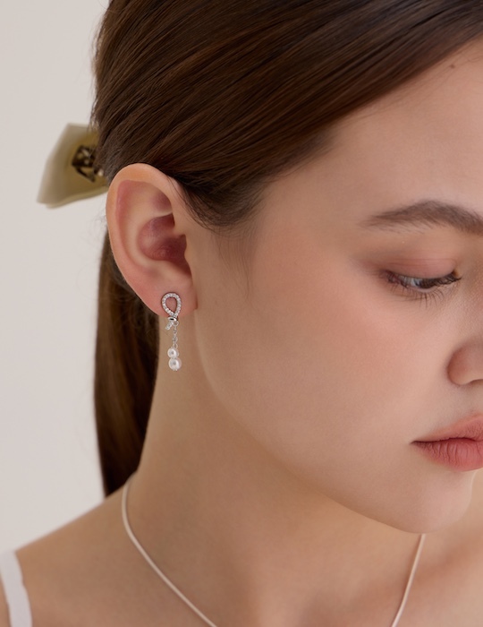 商品名稱:滿鑽繩圈垂珍珠。銀針耳環