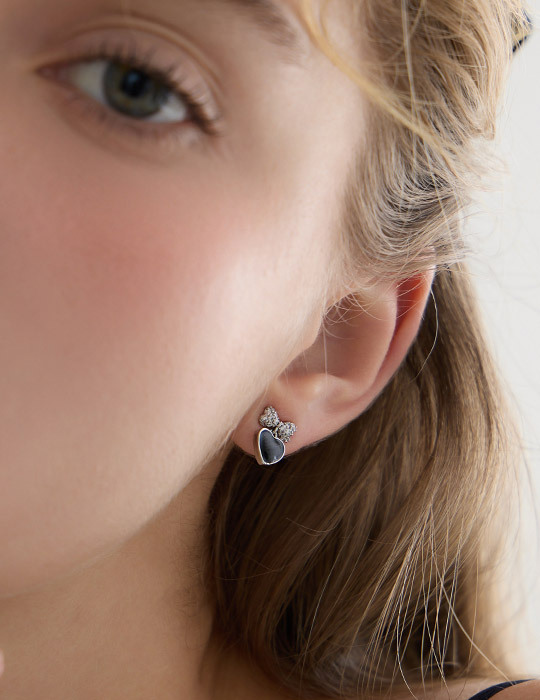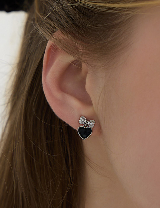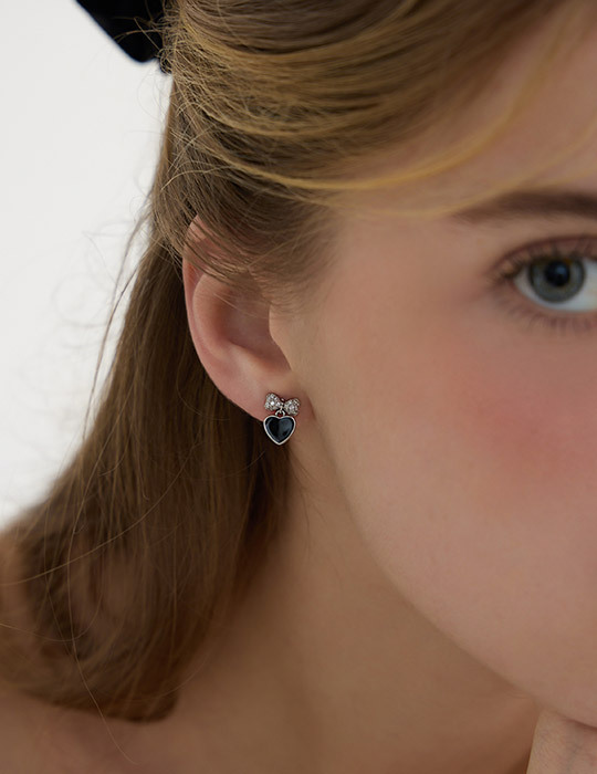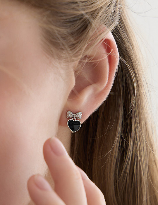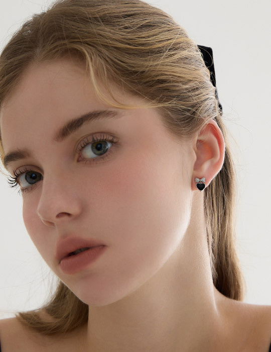 商品名稱:滿鑽蝴蝶結愛心。針式耳環