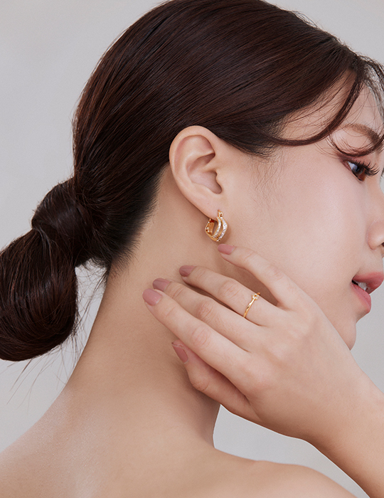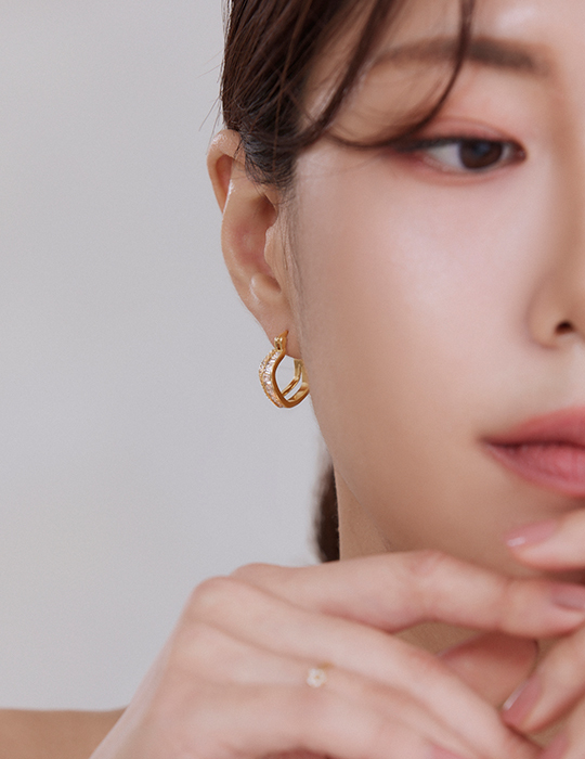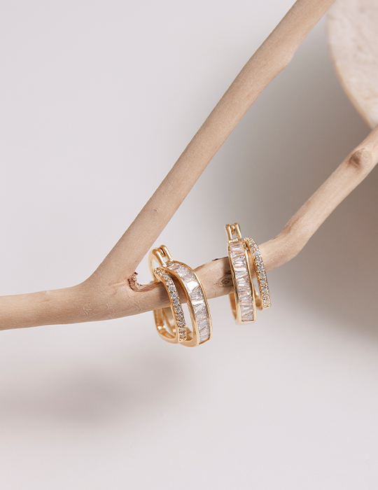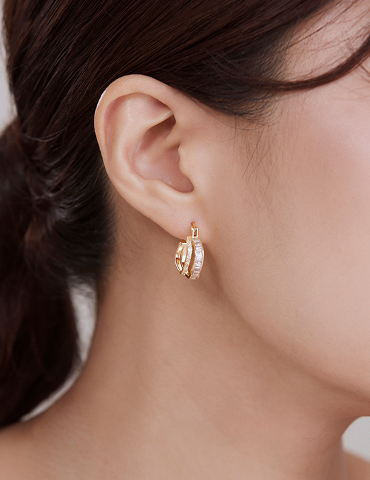 滿鑽雙層方形。針式耳環