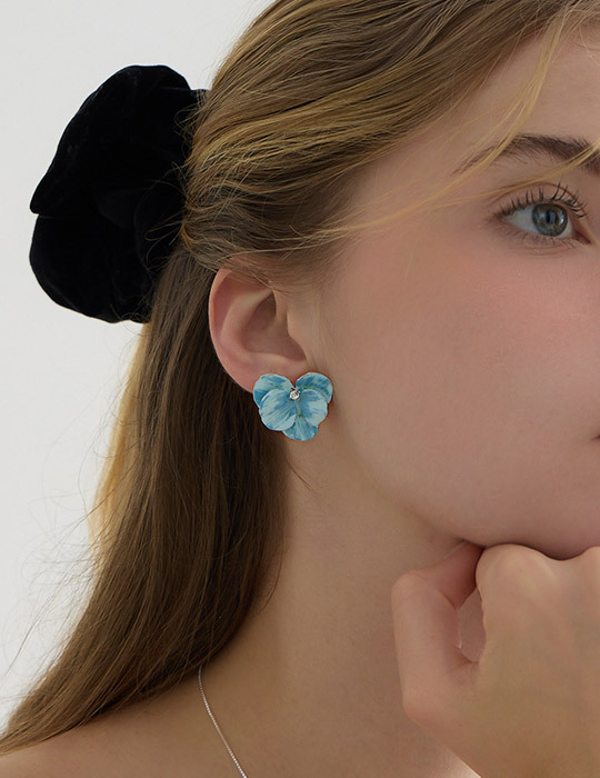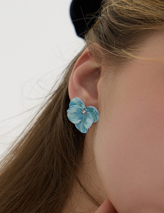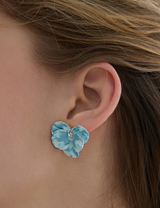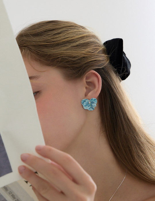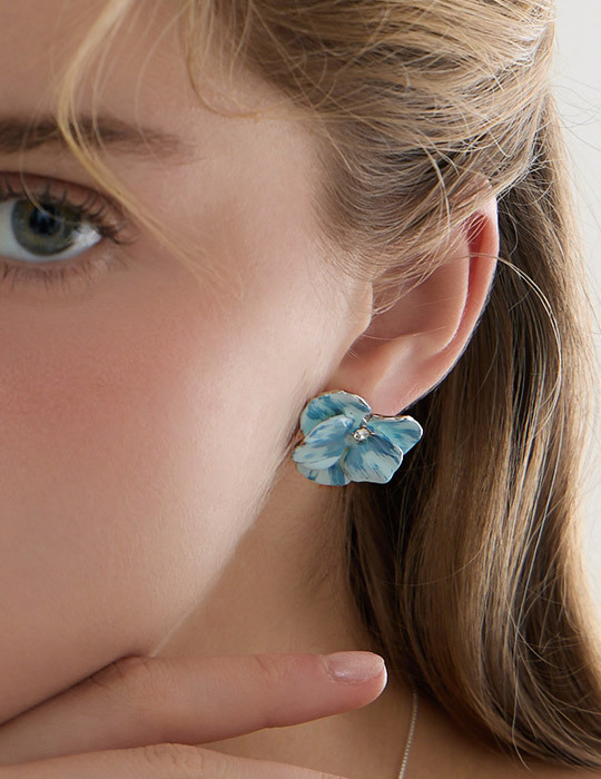 商品名稱:漸層藍色花朵滴釉。夾式耳環