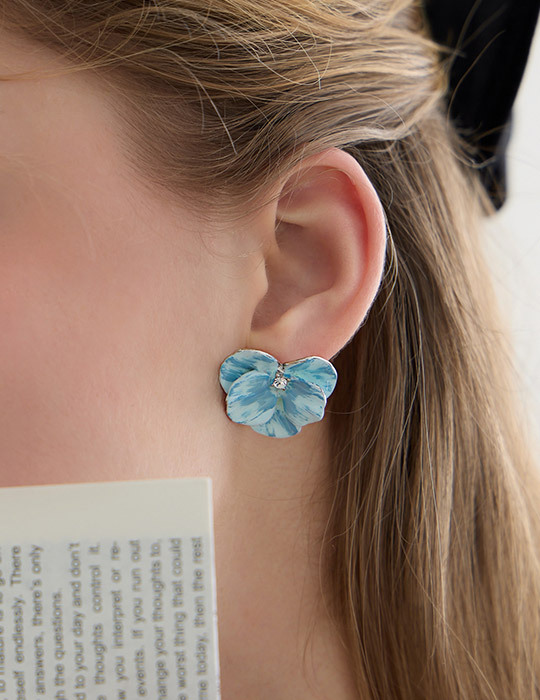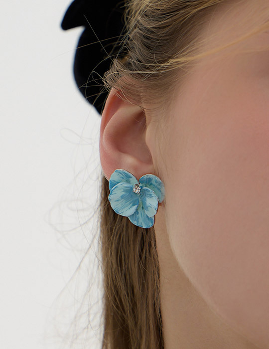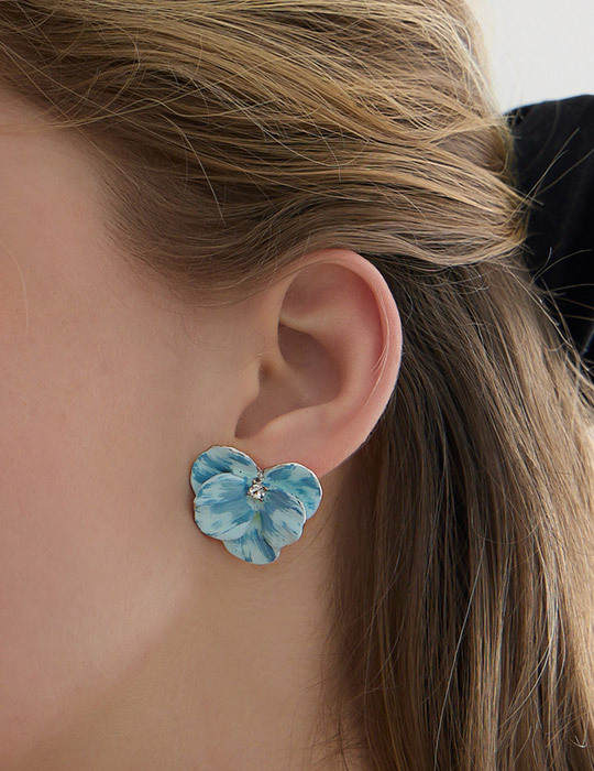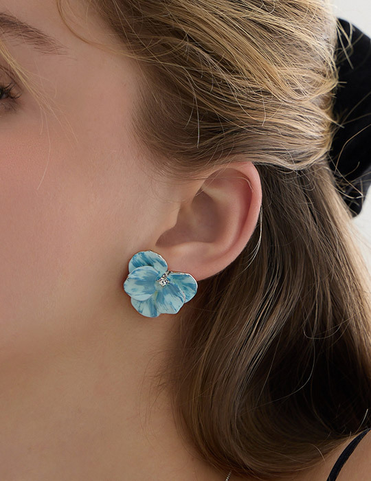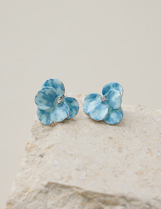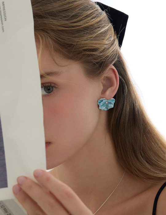 商品名稱:漸層藍色花朵滴釉。針式耳環