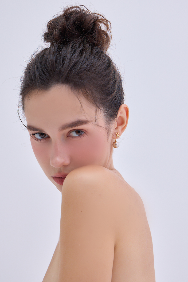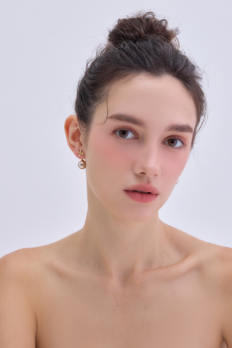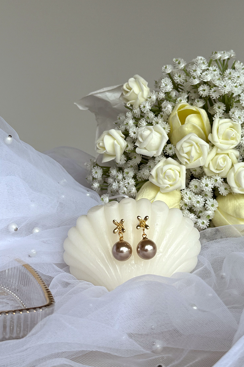 焦糖珍珠。銀針耳環