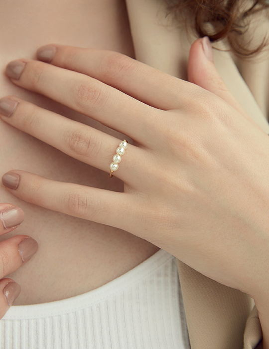 珍珠串可調式戒指