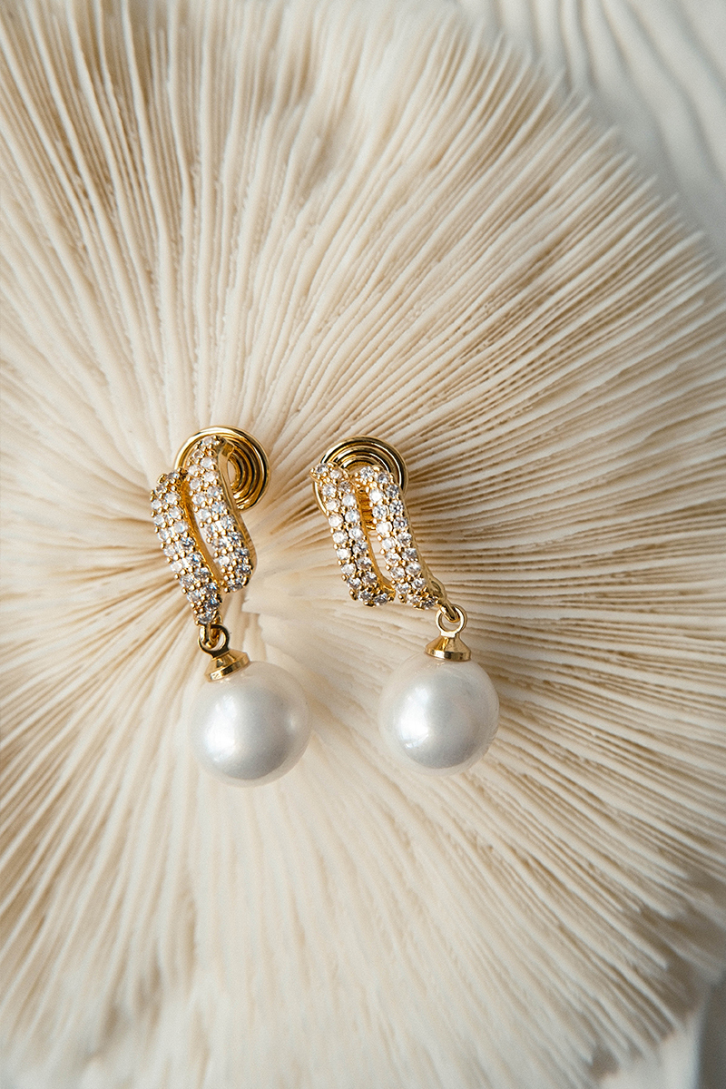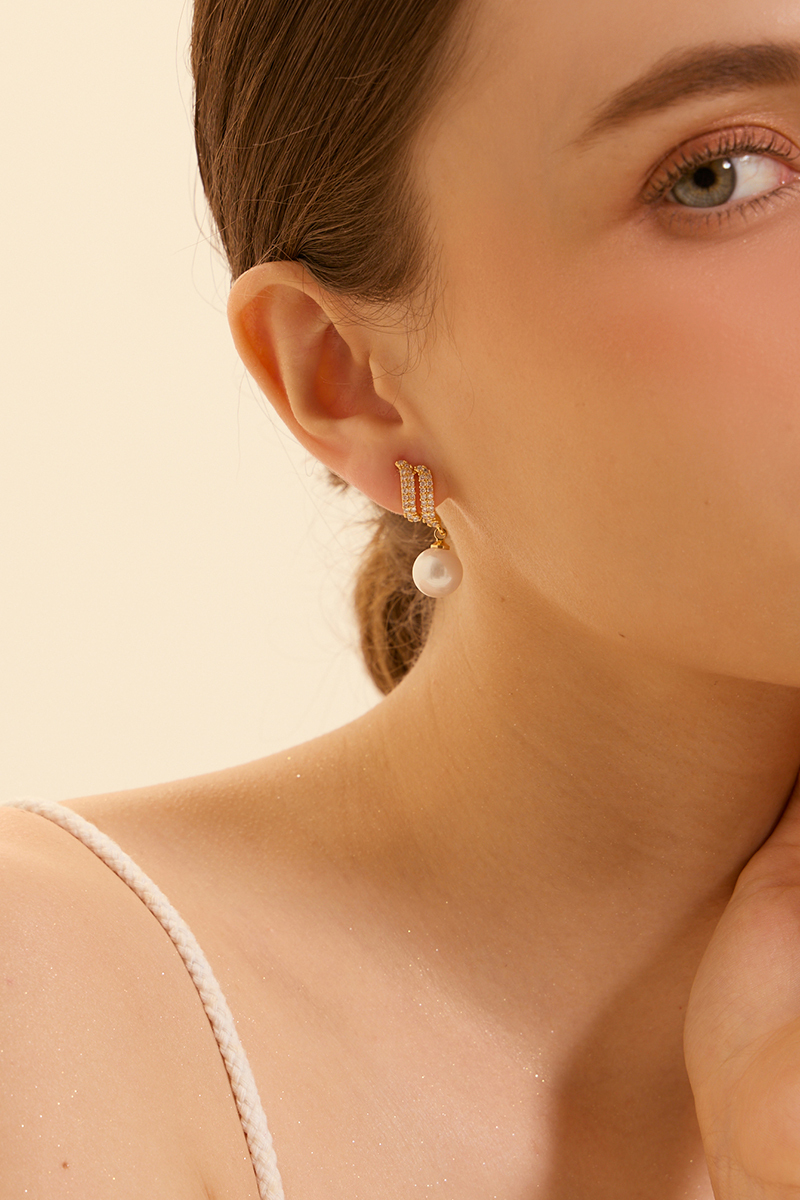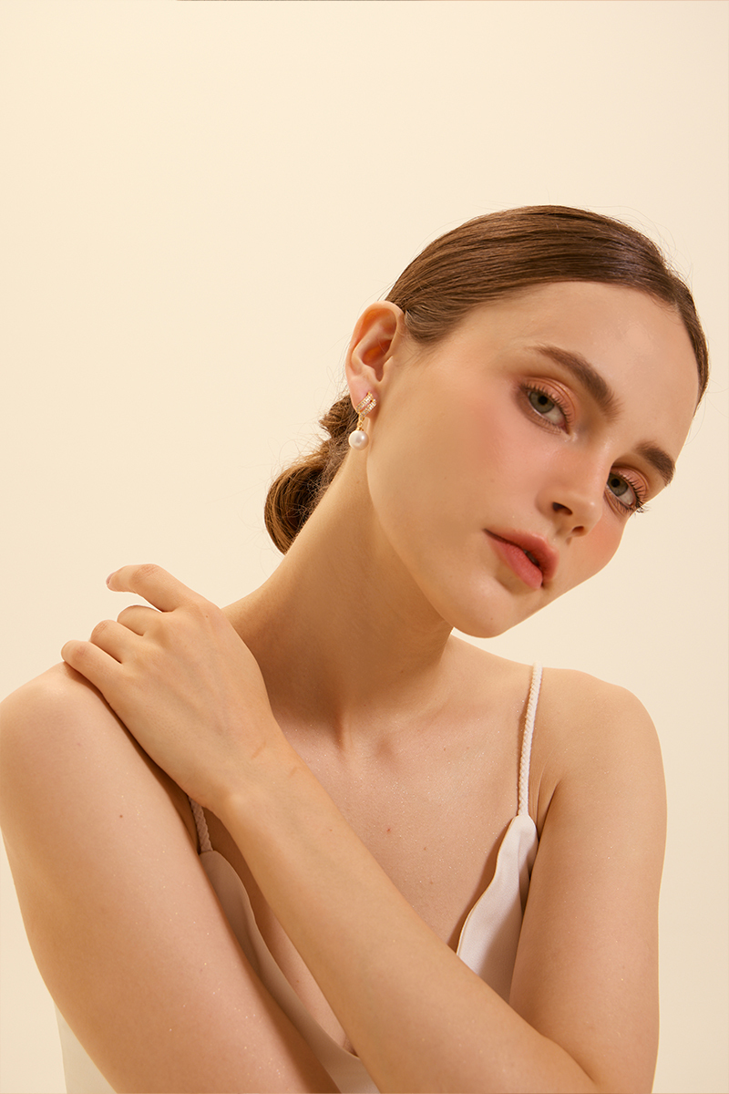 材質:16K金電鍍銅/鋯石/手工珍珠