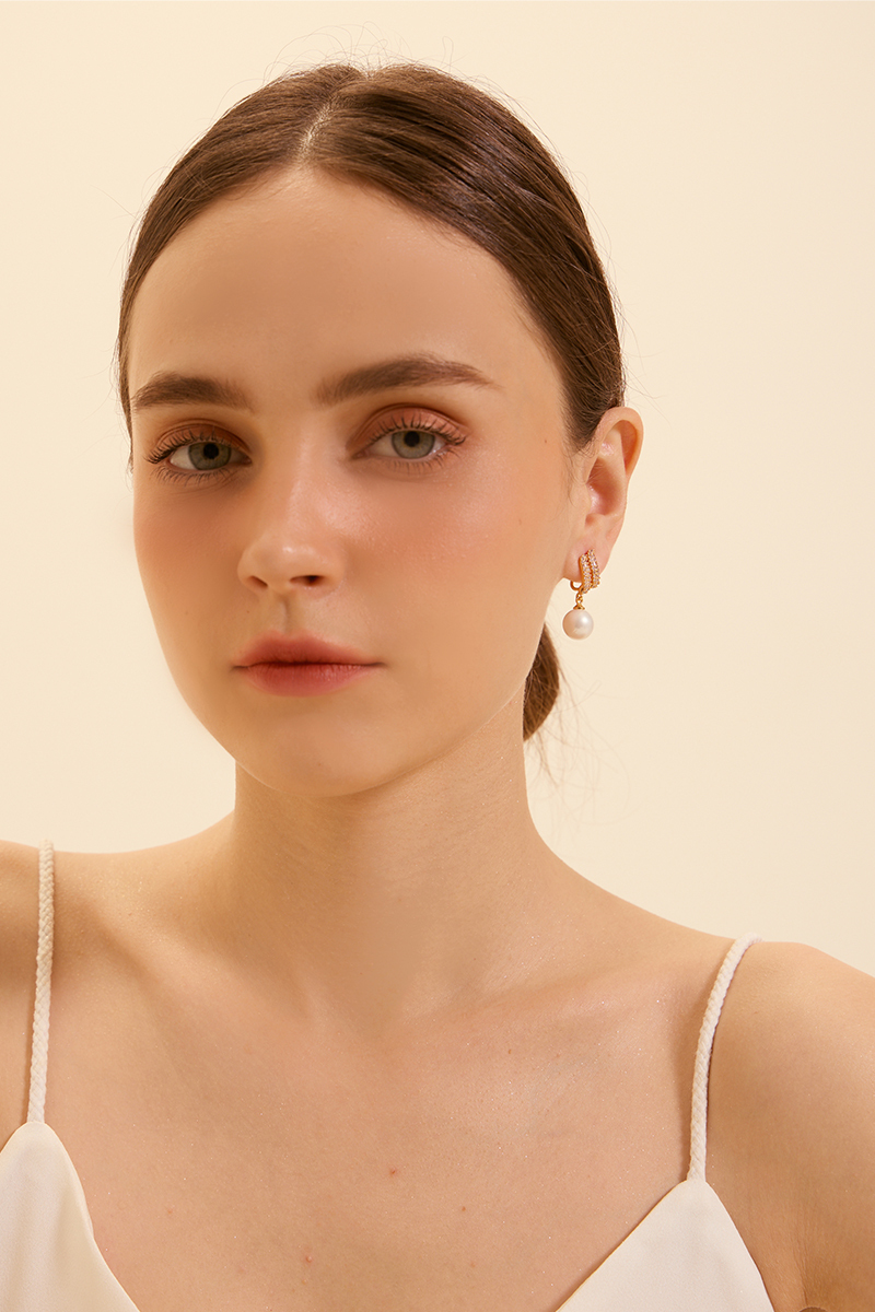 珍珠吊墜。夾式耳環