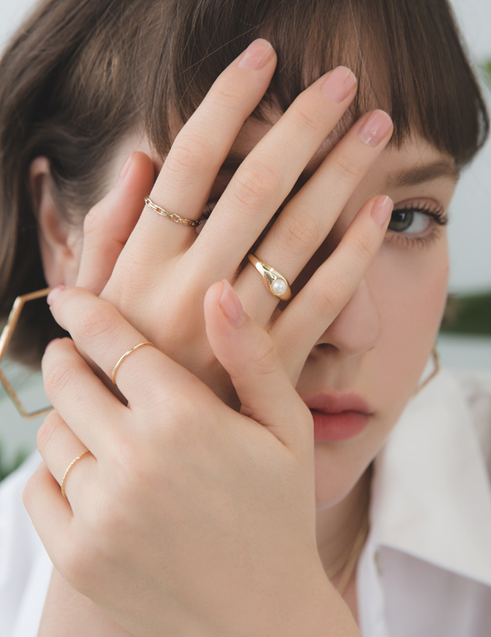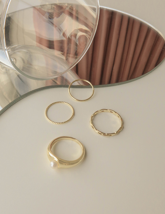 珍珠幾何戒指四件組