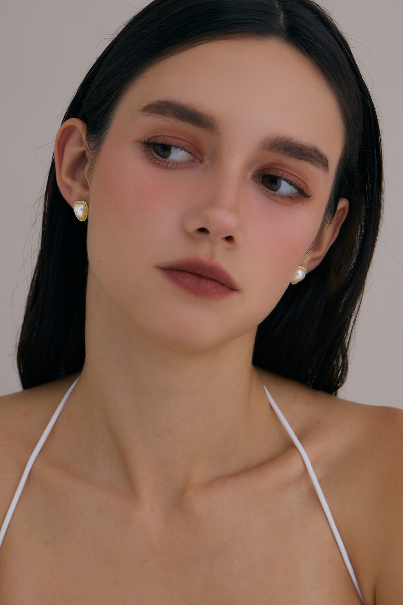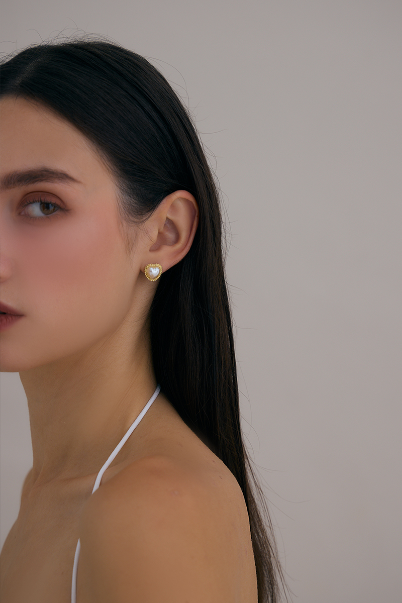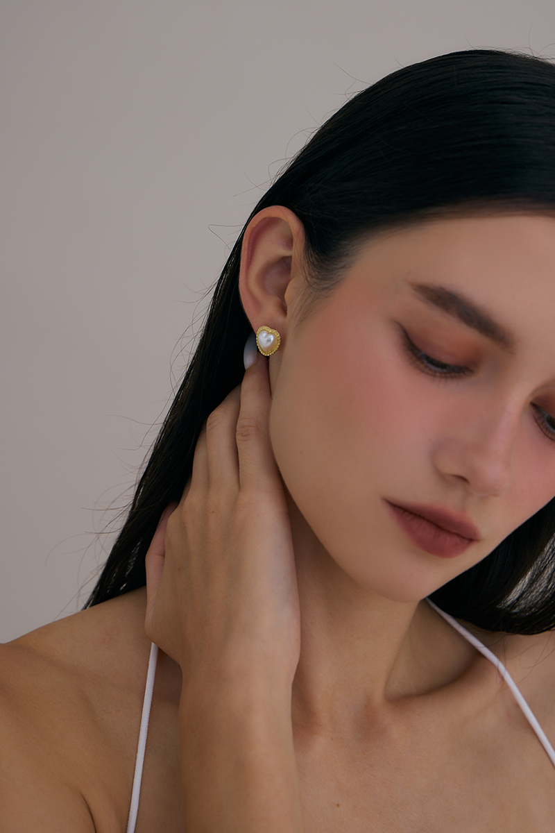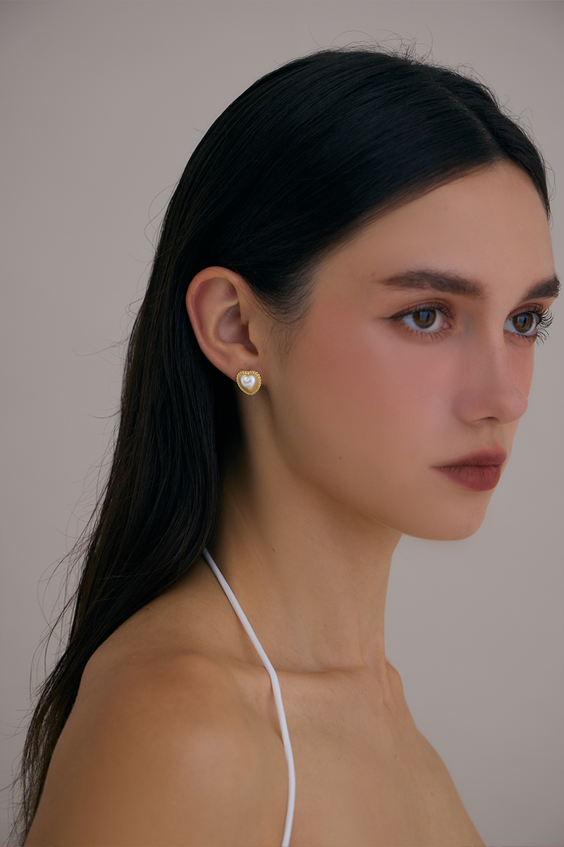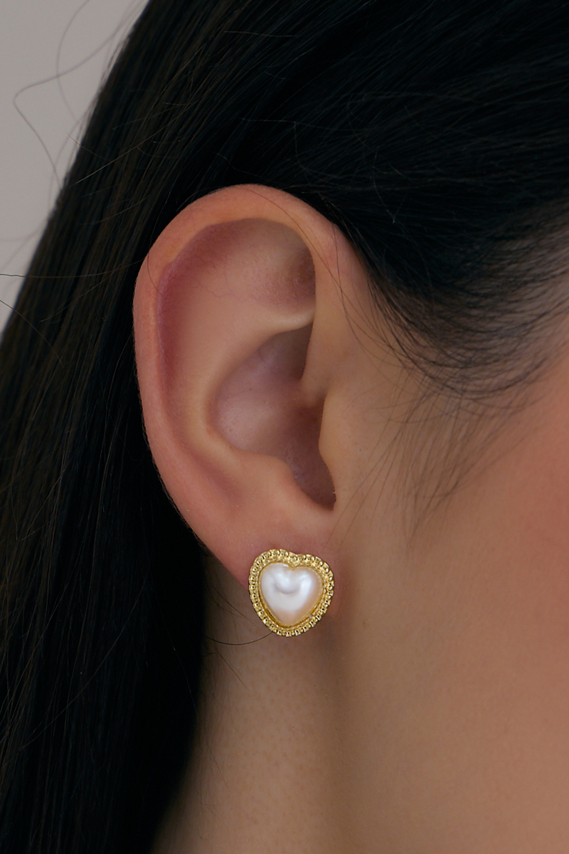 珍珠愛心語。針式耳環