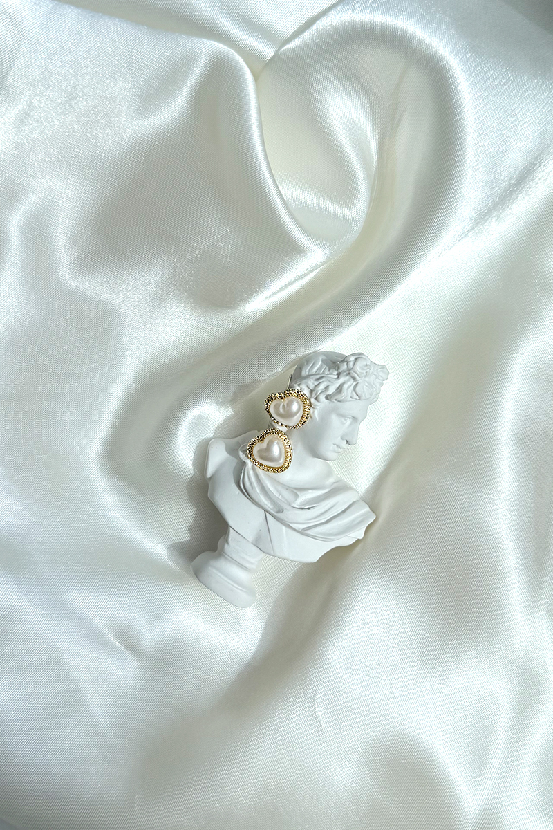 商品名稱: 珍珠愛心語。針式耳環