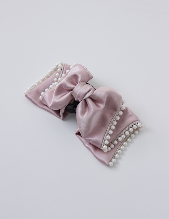 商品名稱:珍珠滾邊蝴蝶結髮夾(粉)