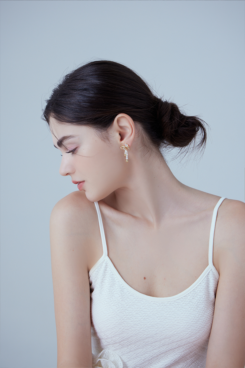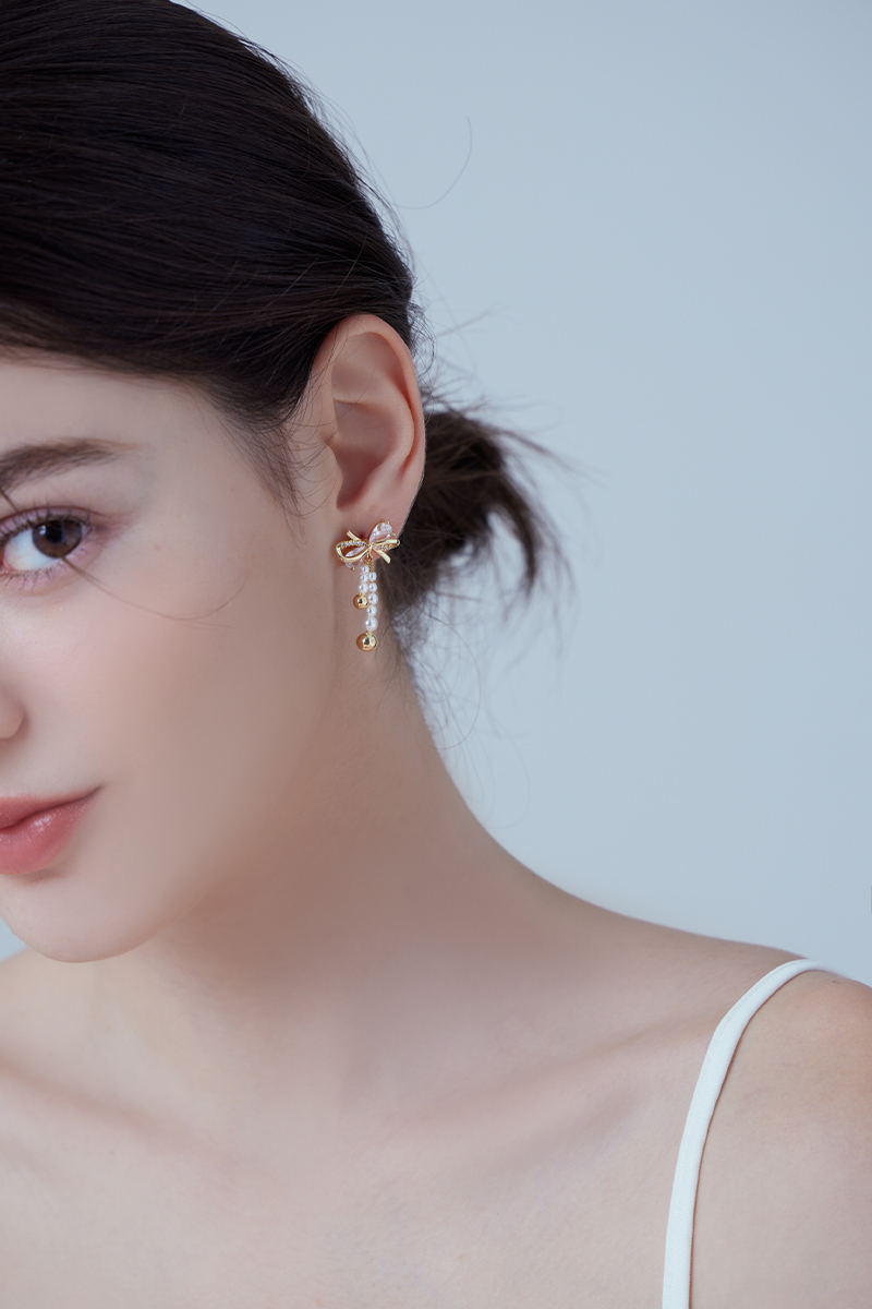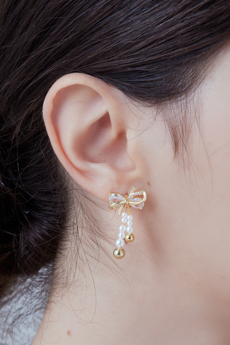 商品名稱: 珍珠鋯石蝴蝶結。夾式耳環