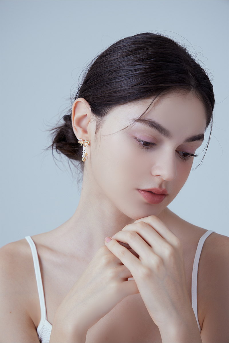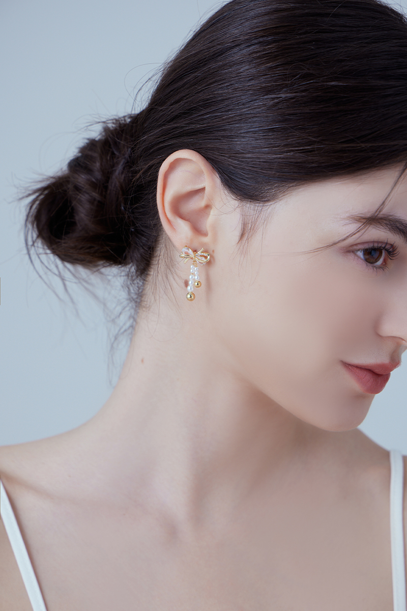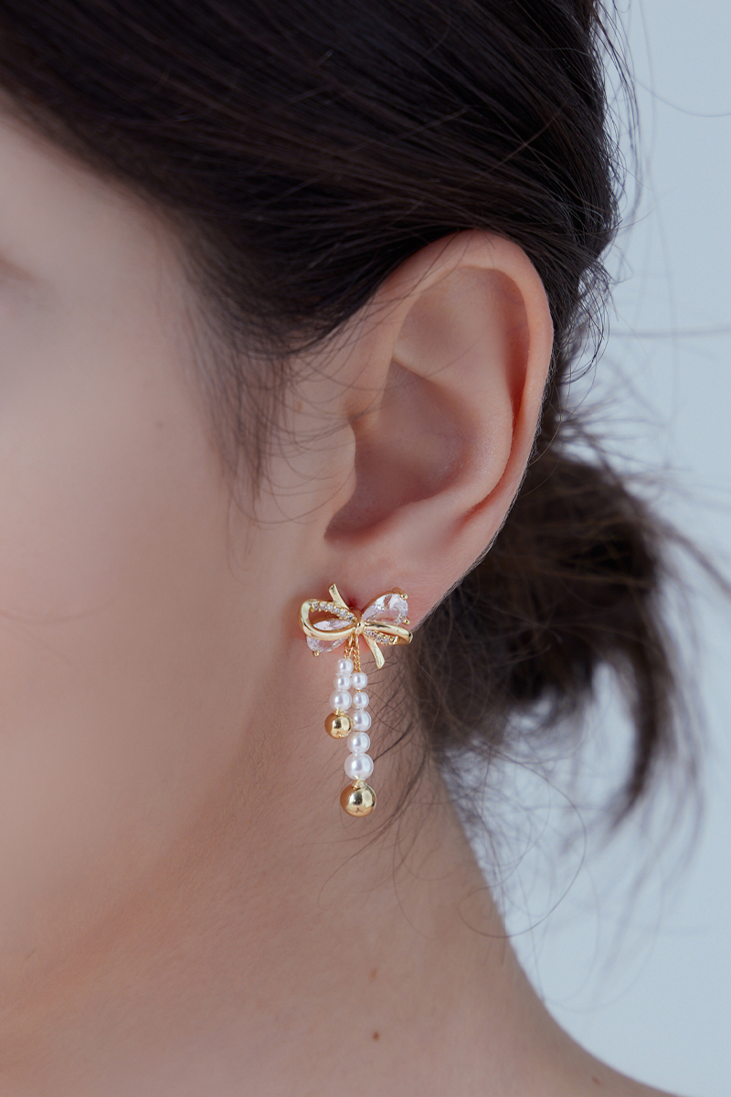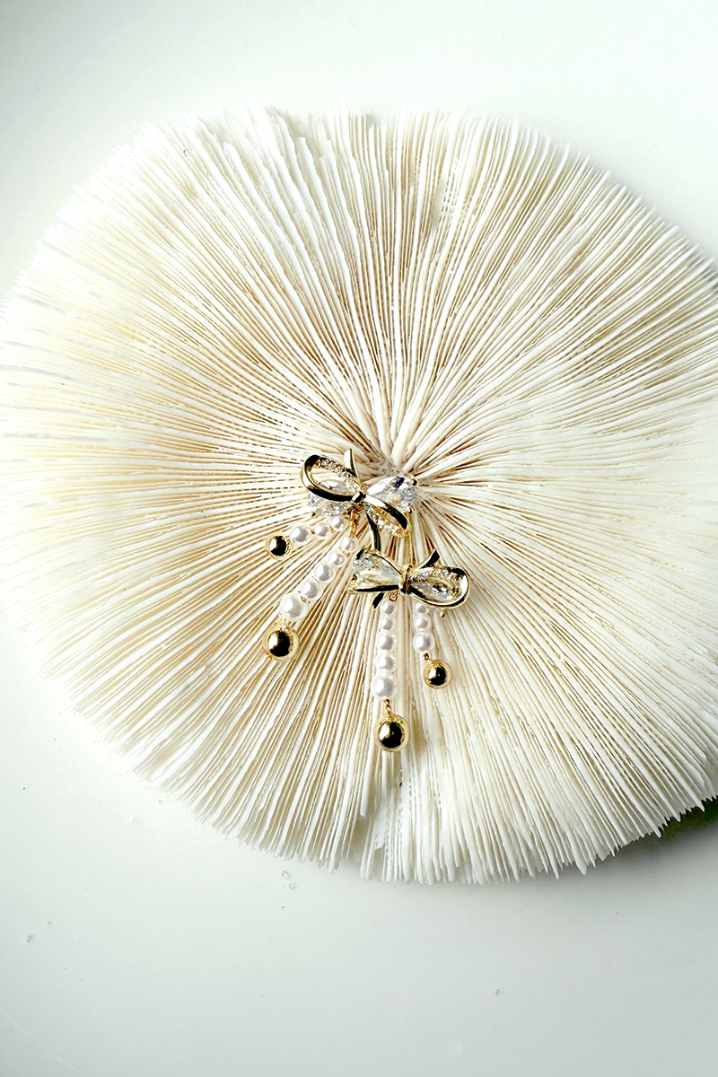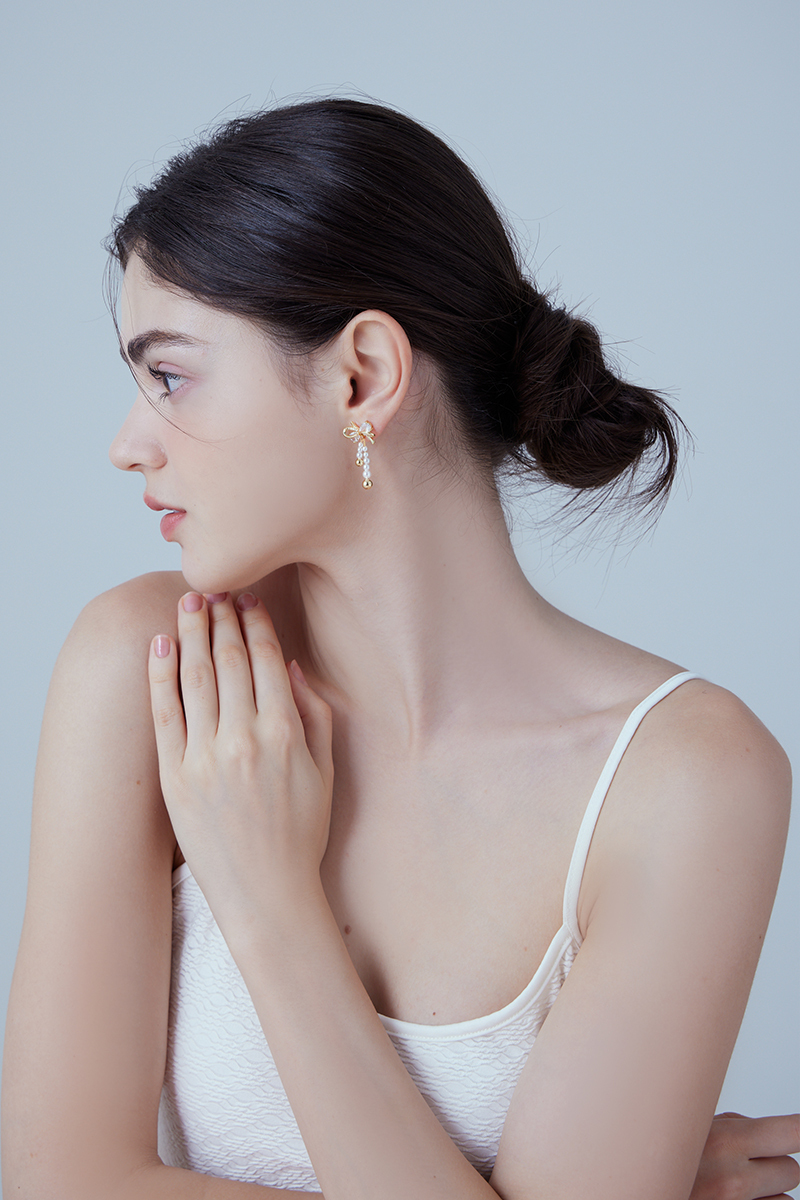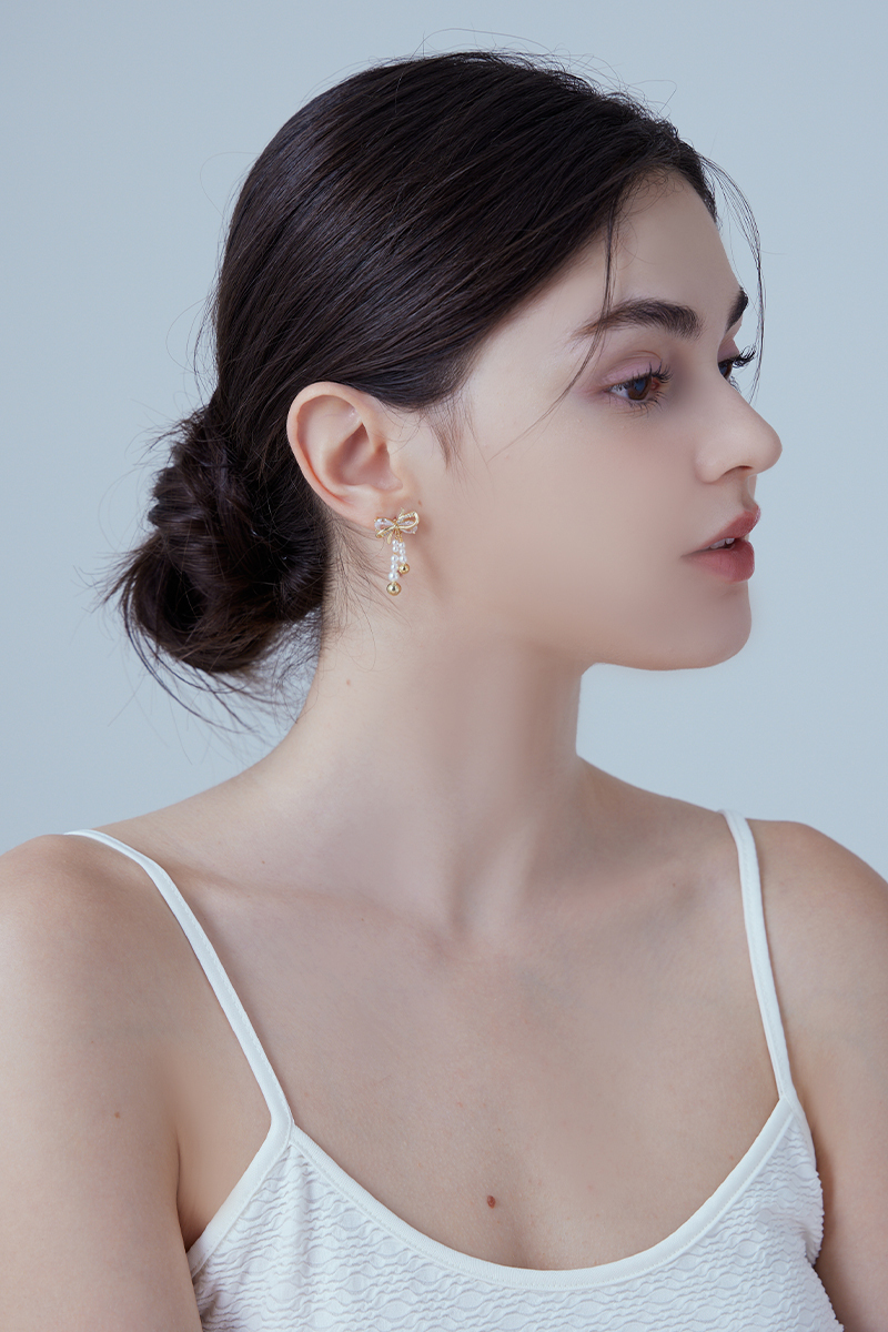 商品名稱: 珍珠鋯石蝴蝶結。銀針耳環