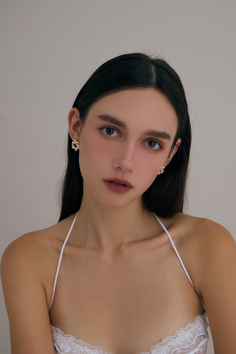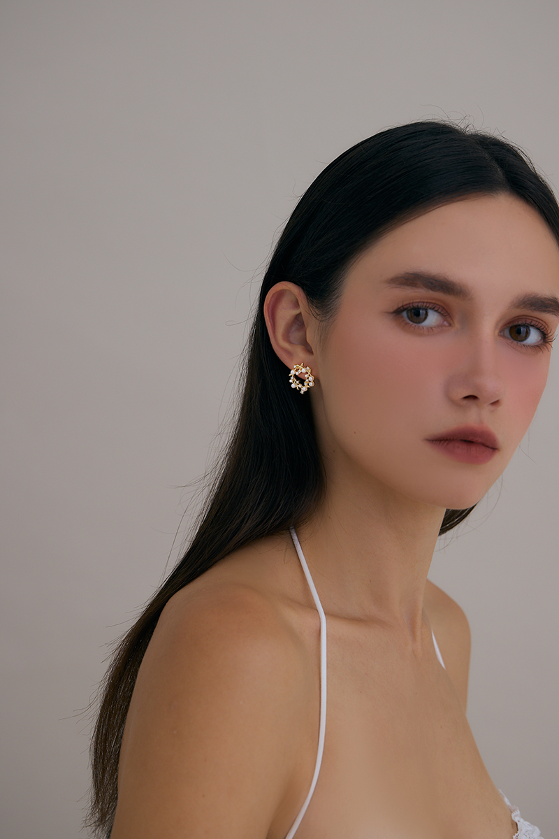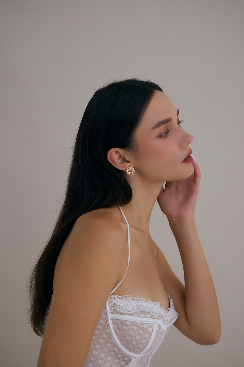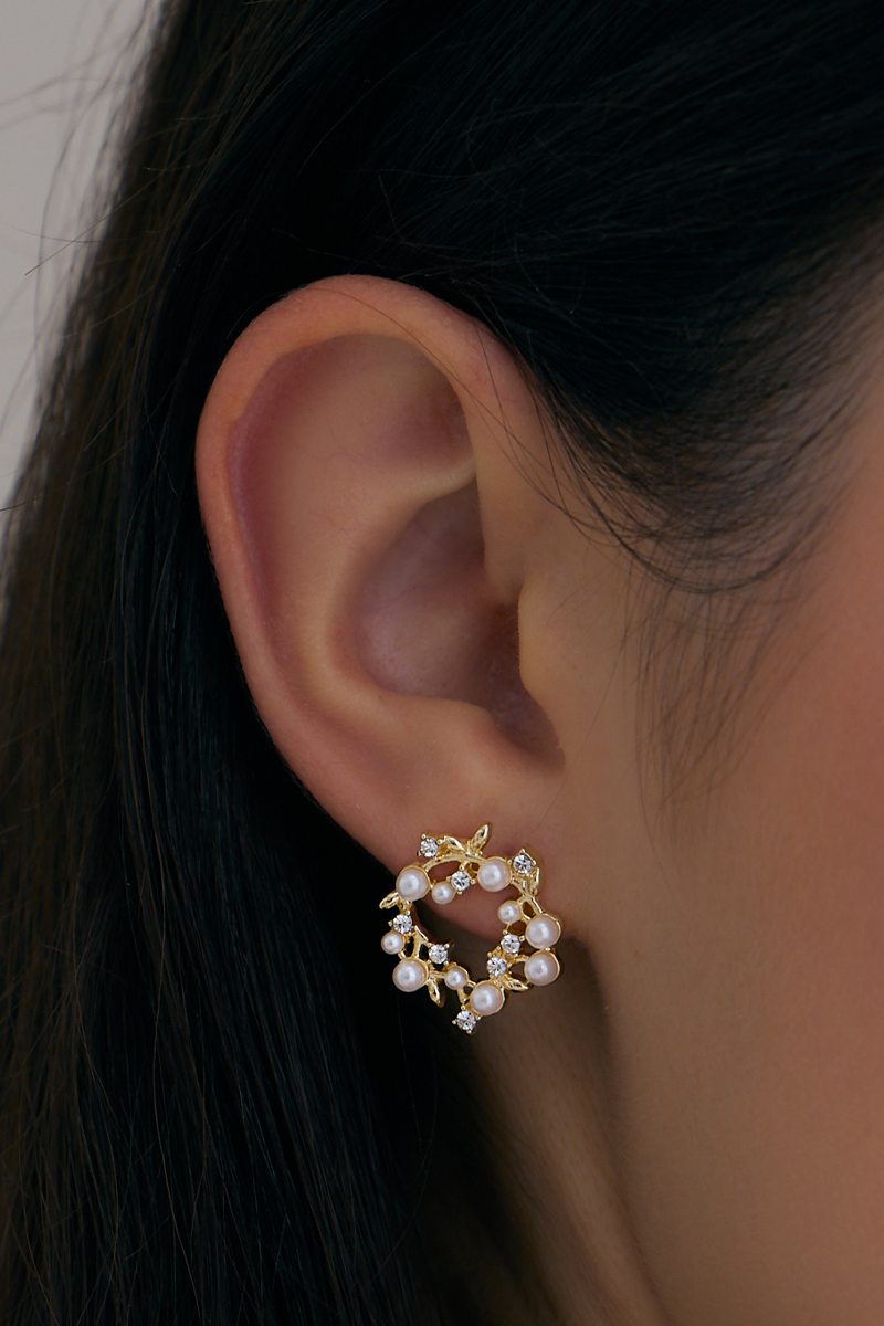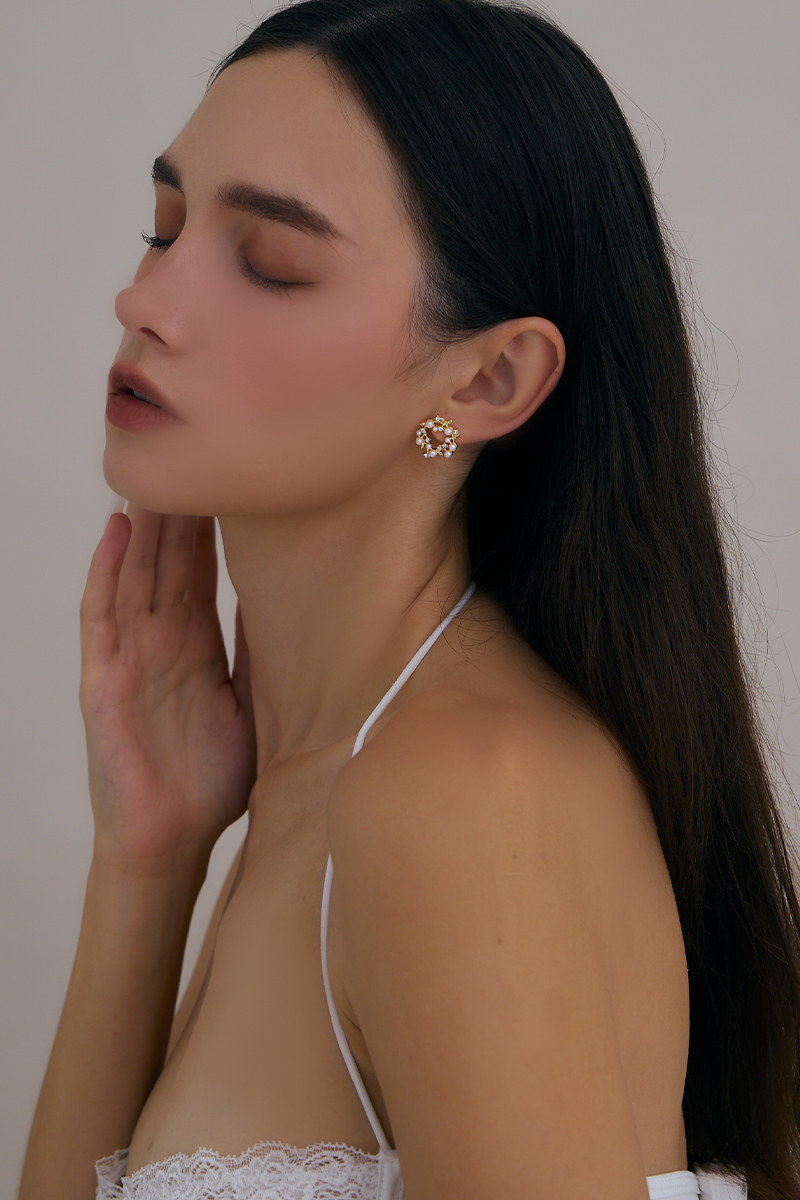 商品名稱: 珍珠鑽石花環。銀針耳環