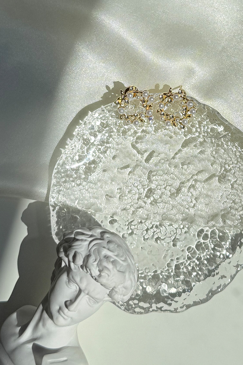 珍珠鑽石花環。銀針耳環