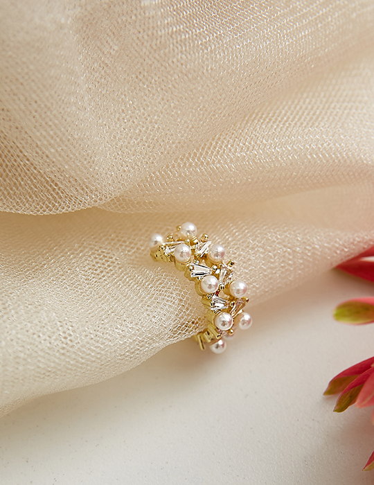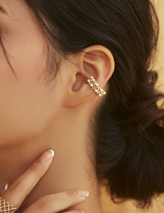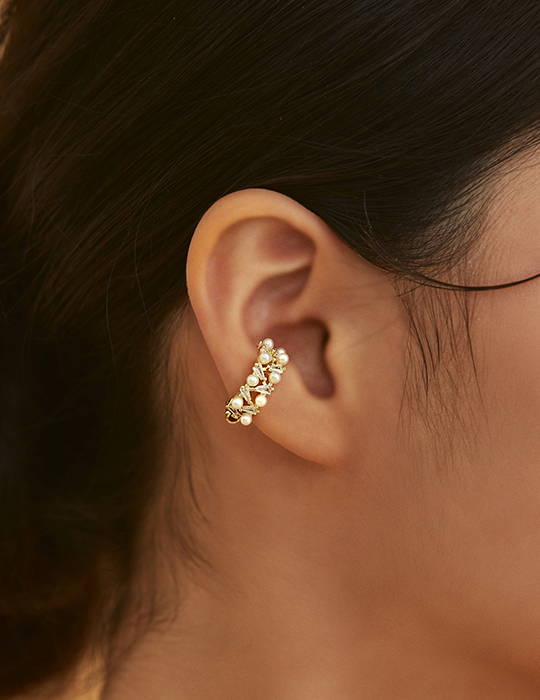 珍珠閃耀交疊感耳骨夾(單支)