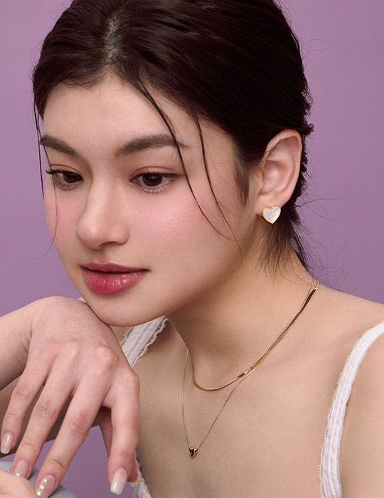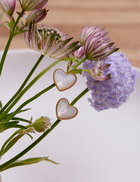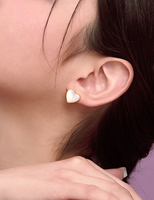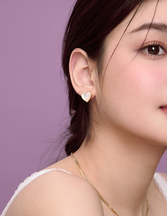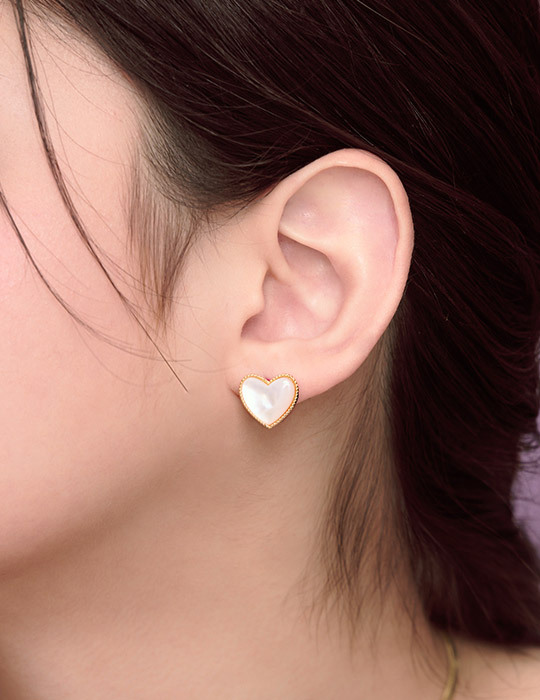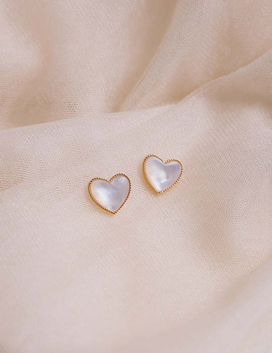 珠邊設計貝殼愛心。針式耳環