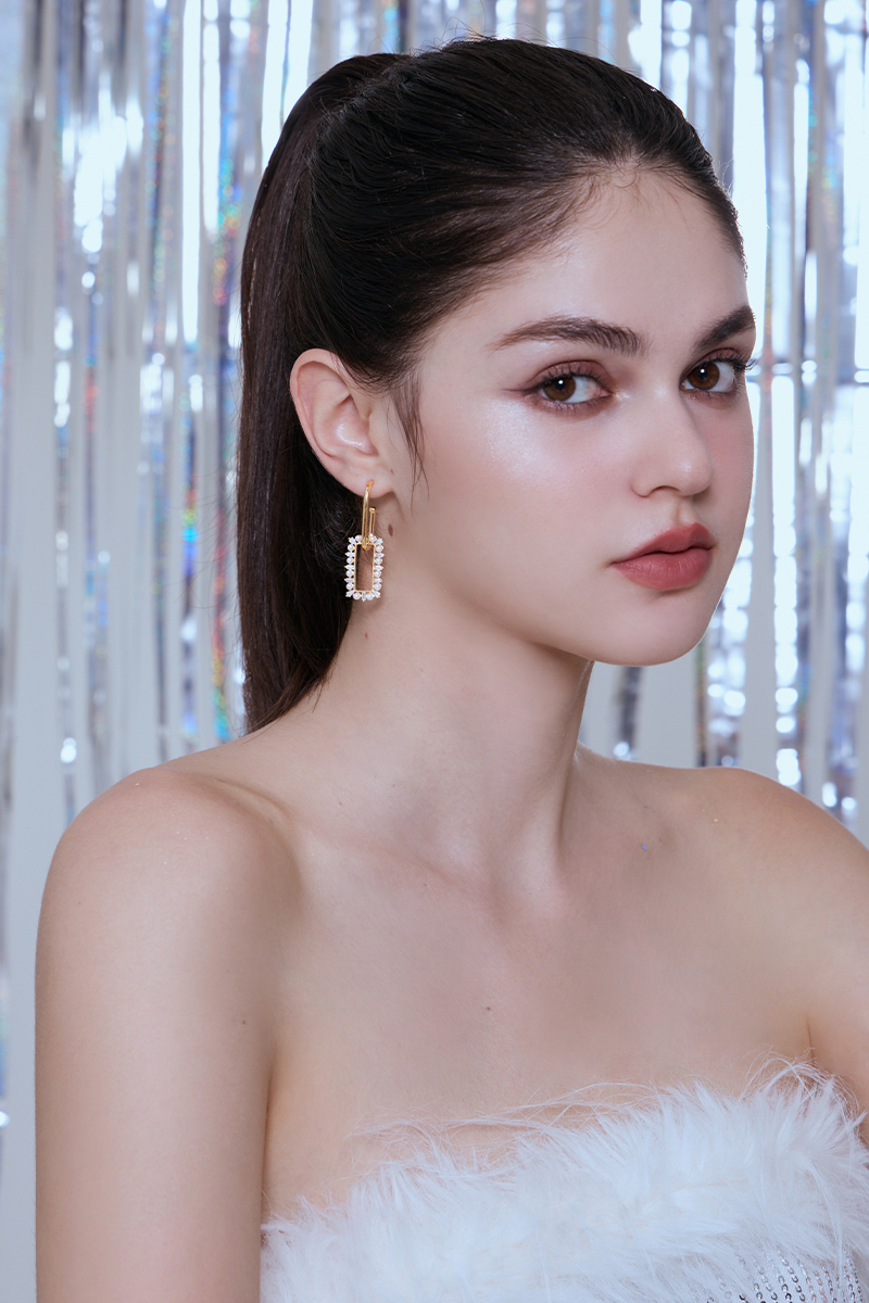 商品名稱: 璀璨微鑲珍珠。銀針耳環