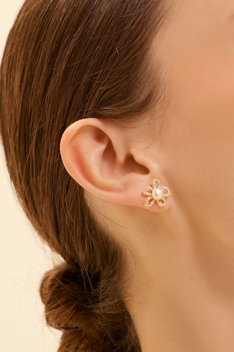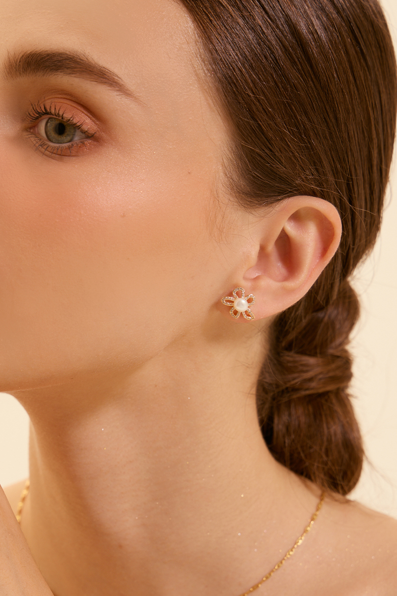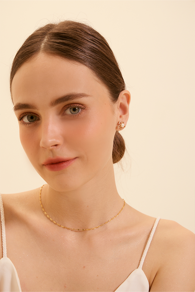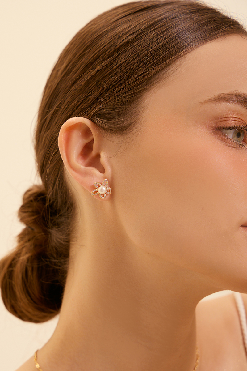 材質:16K金電鍍銅/鋯石/手工珍珠/925銀針