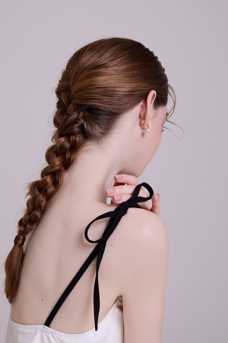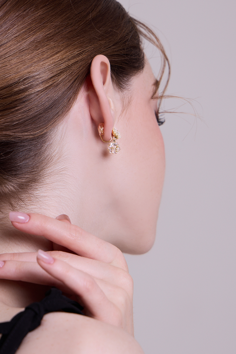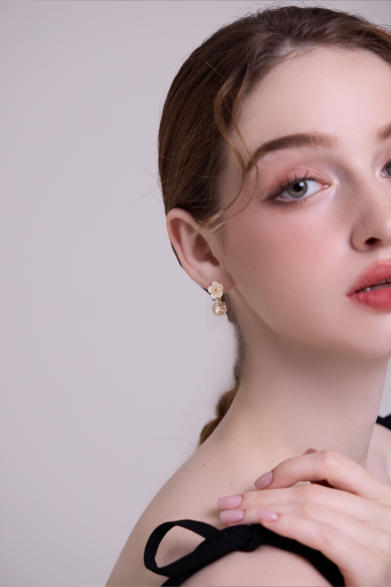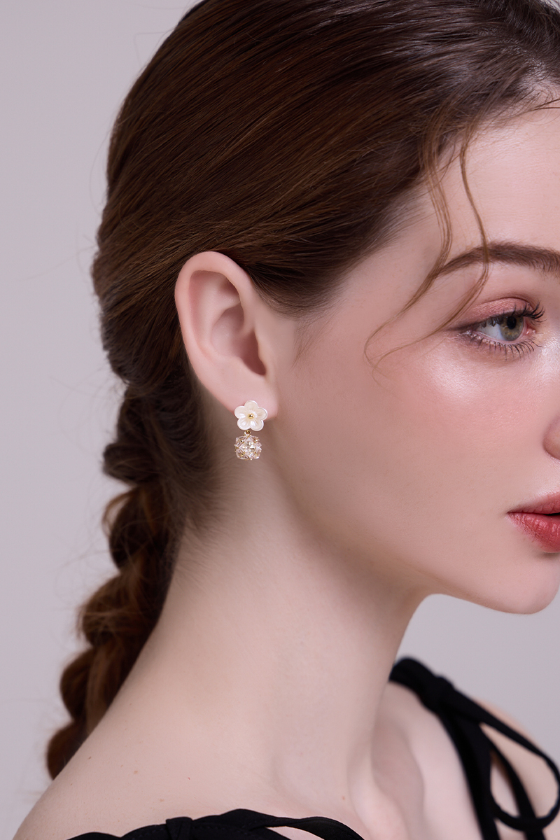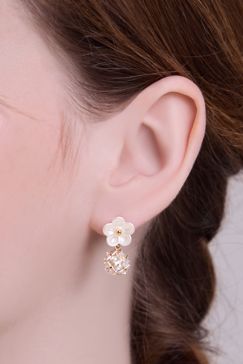 商品名稱: 甜美貝殼花朵垂墜鋯石。夾式耳環