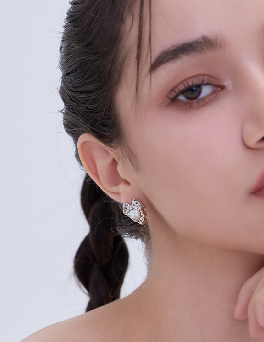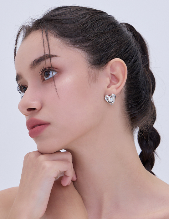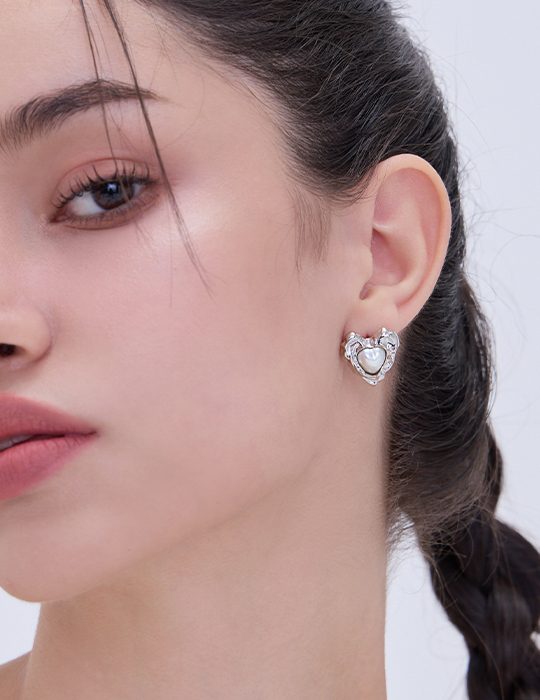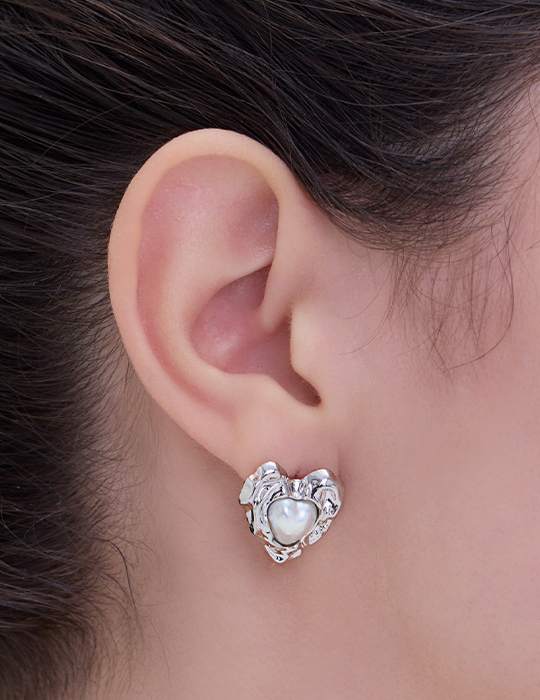 商品名稱:甜酷熔岩珍珠愛心。銀針耳環