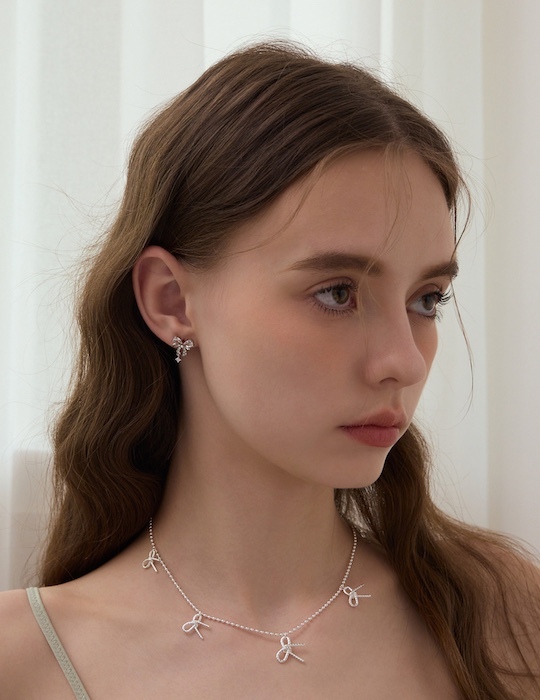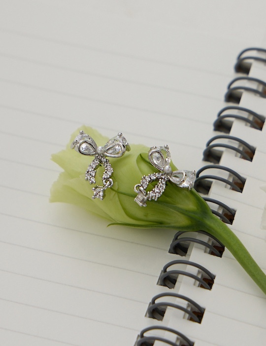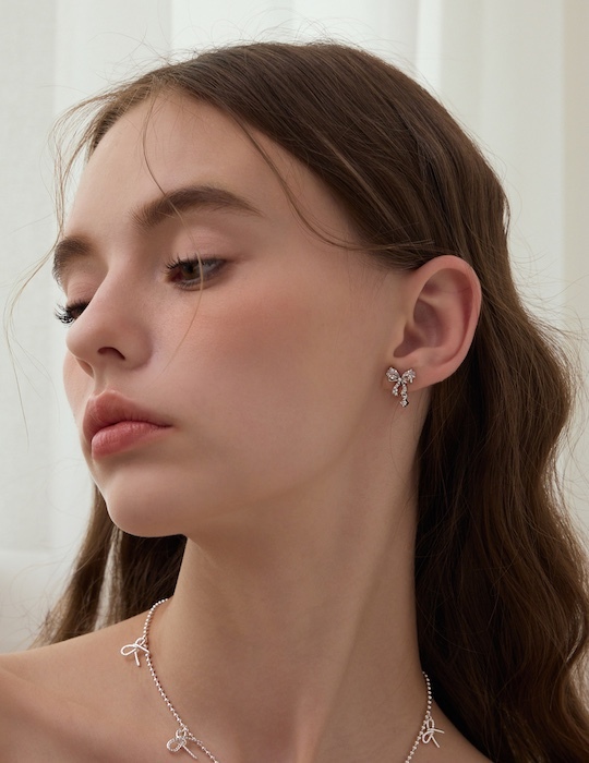 商品名稱:疊鑽蝴蝶結。銀針耳環(銀)