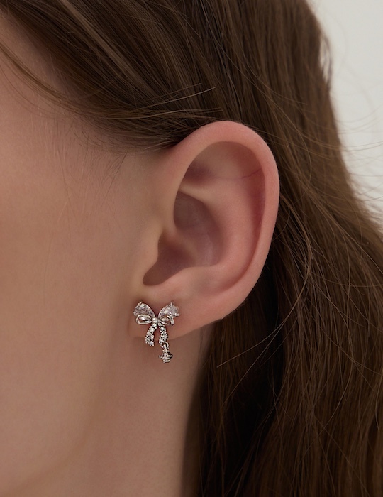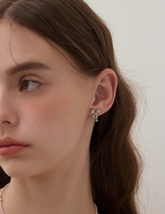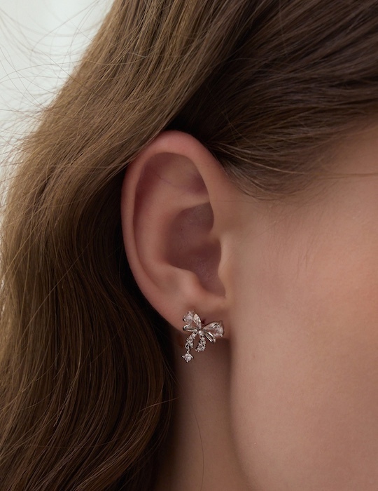 疊鑽蝴蝶結。銀針耳環(銀)