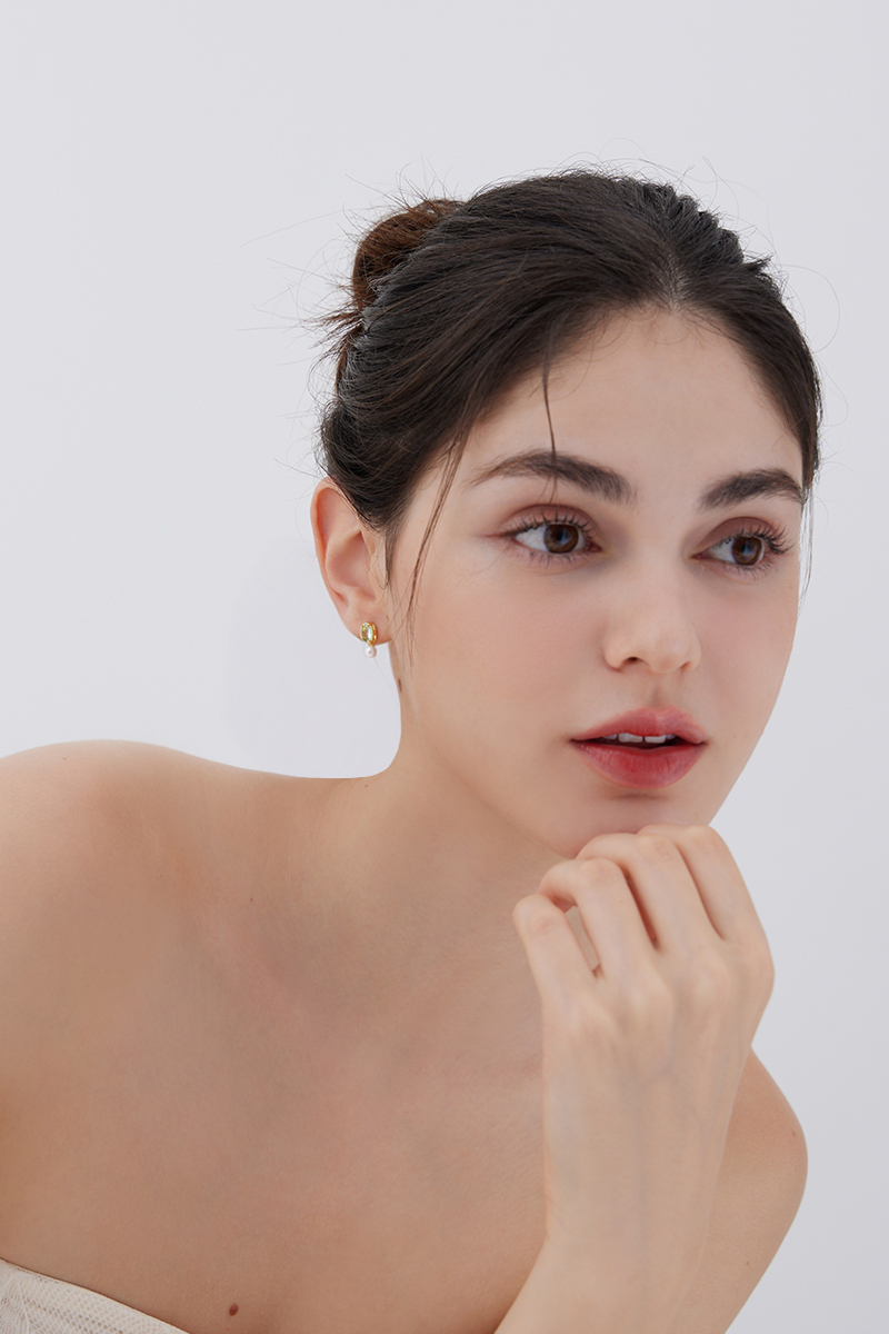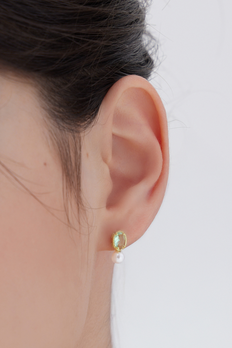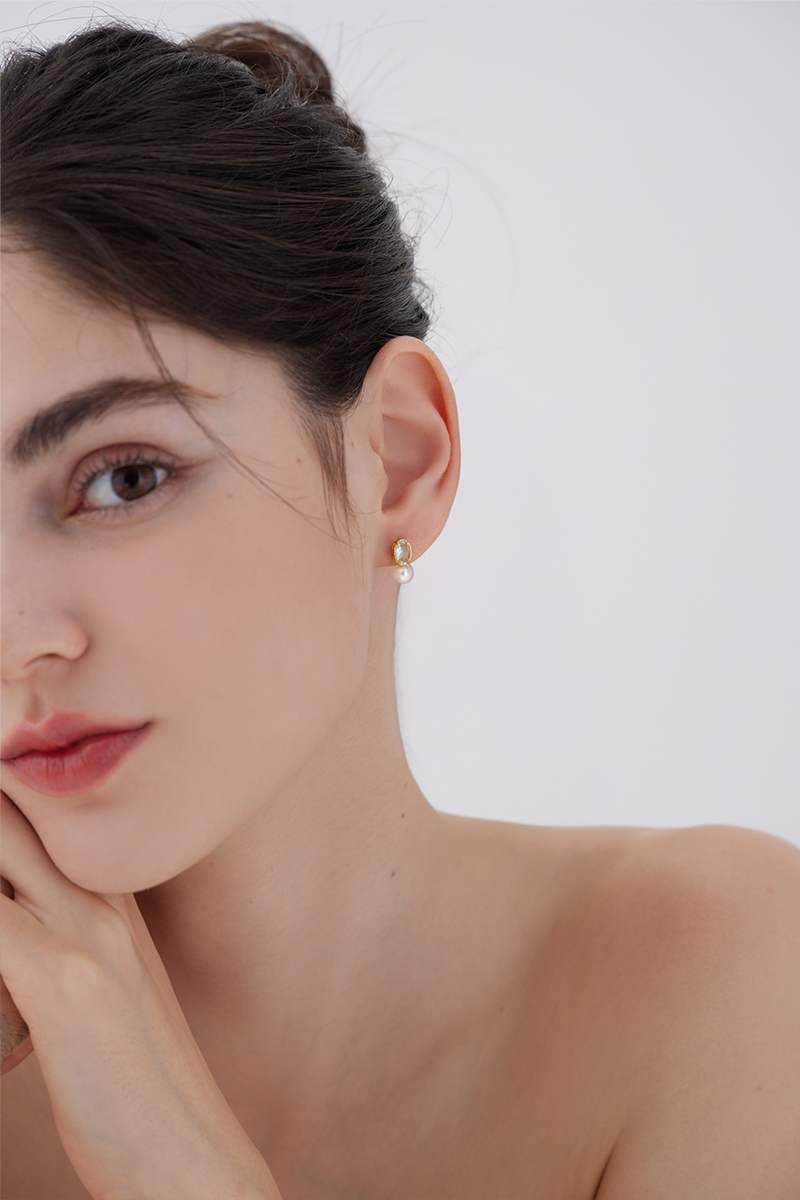 商品名稱: 碧綠鋯石流光珍珠。針式耳環