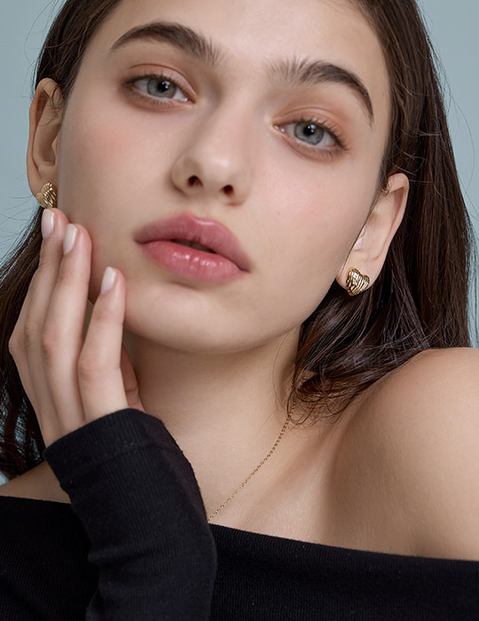 商品名稱:立體愛心波紋。銀針耳環(金)