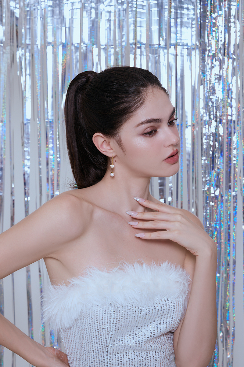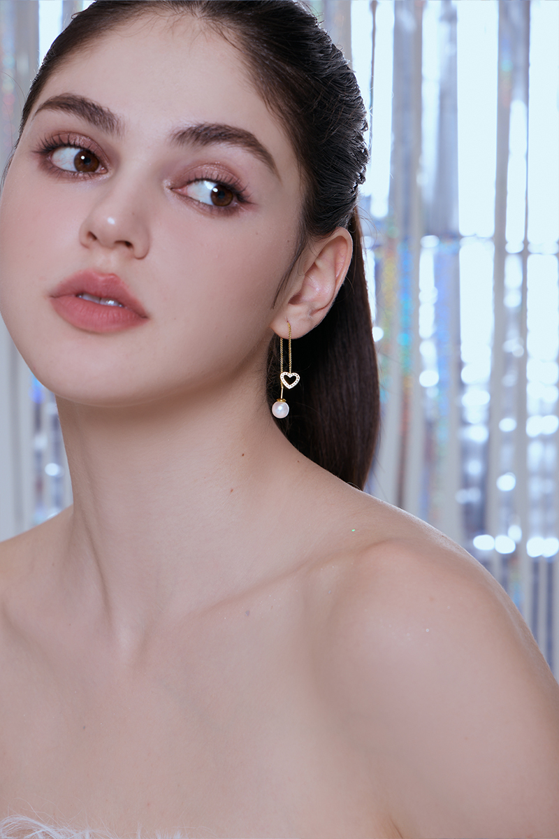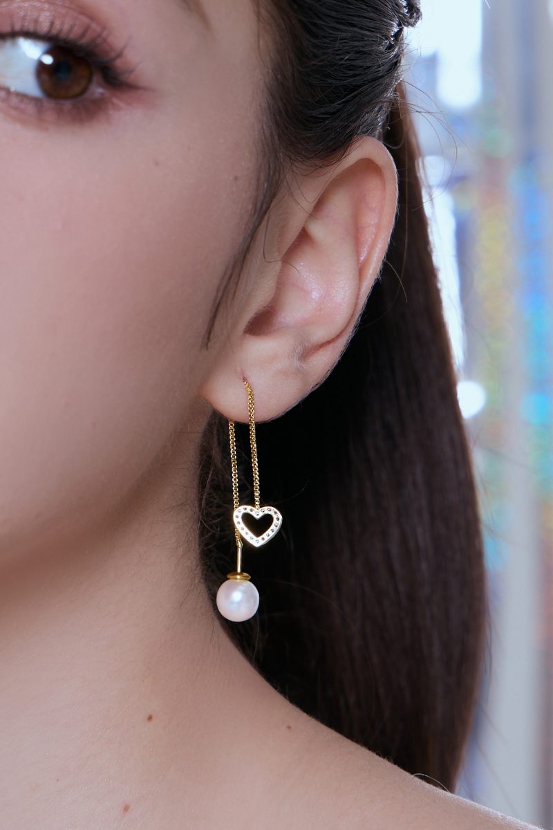 商品名稱: 簍空愛心垂墜珍珠。銀針耳環