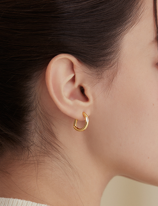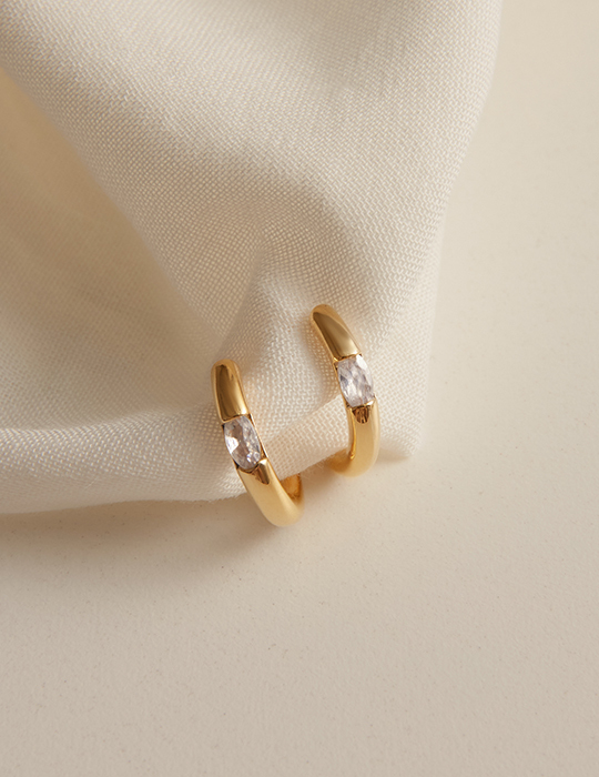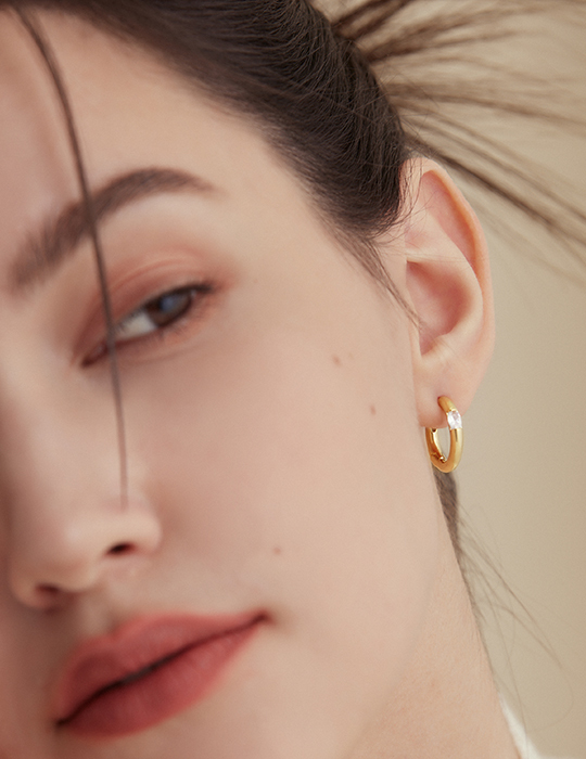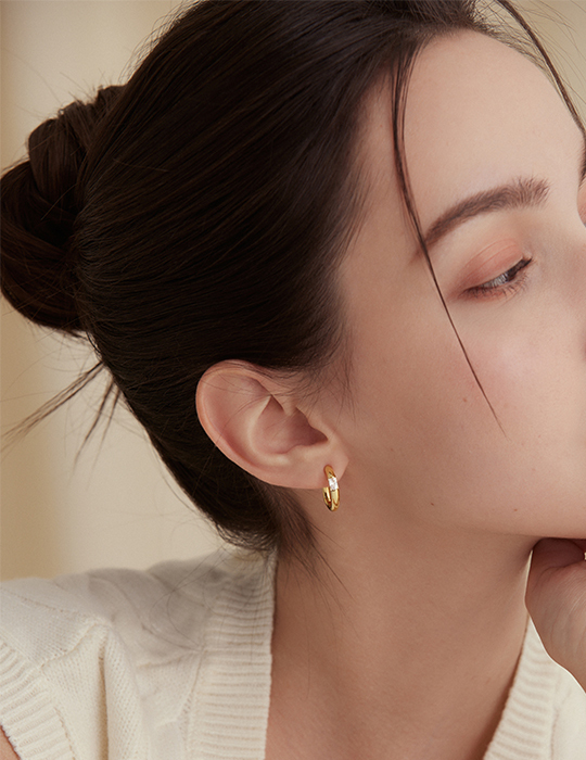 簡約圈型鑲嵌鋯石。銀針耳環