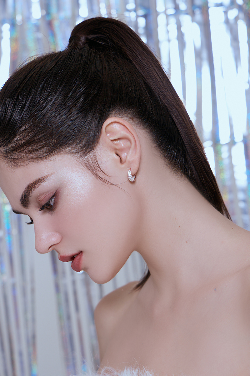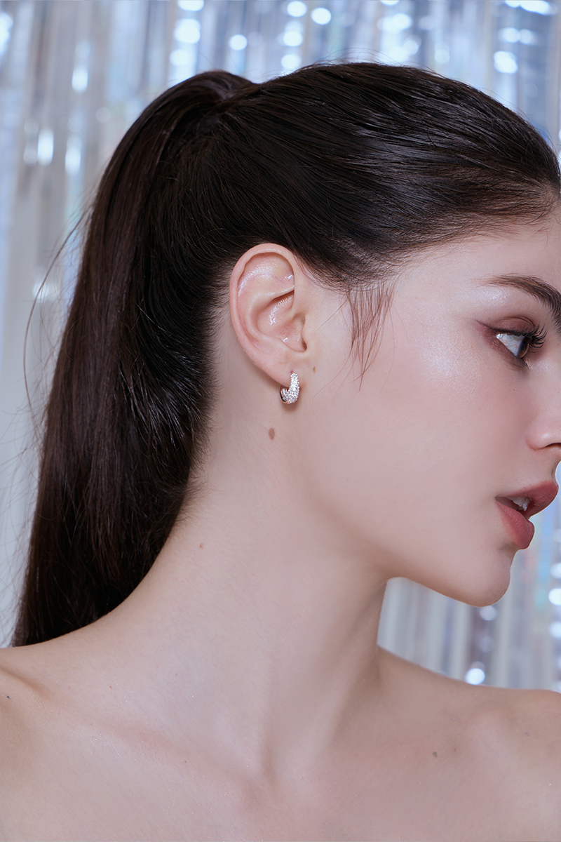 商品名稱: 簡約滿鑽環型。針式耳環(銀)