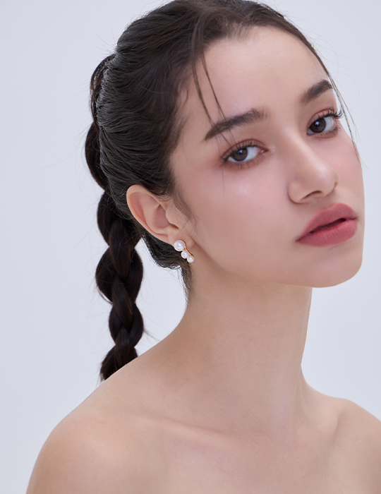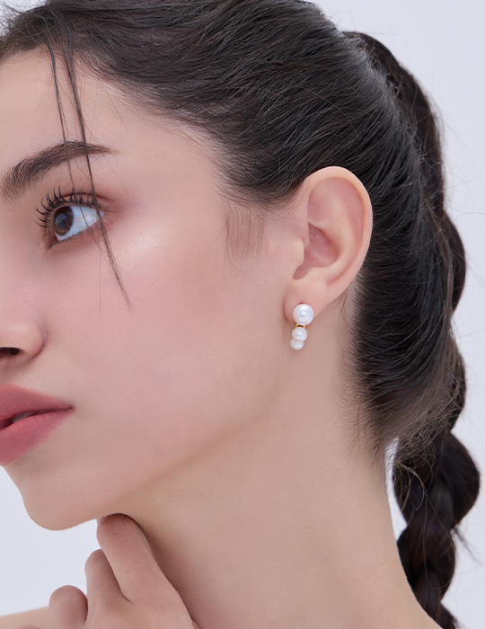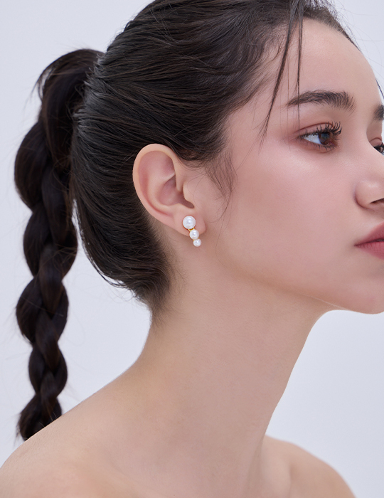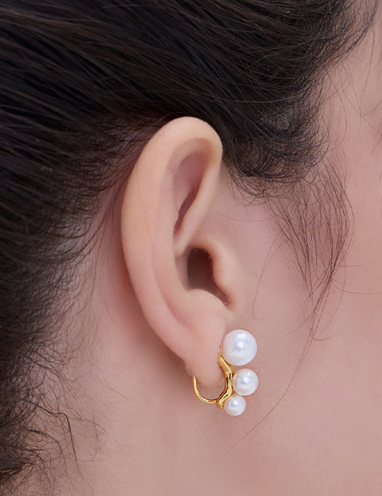 簡約珍珠排列。夾式耳環
