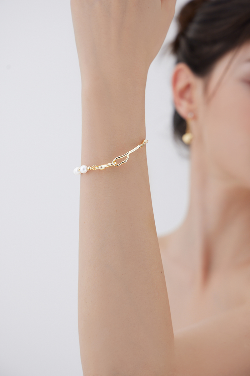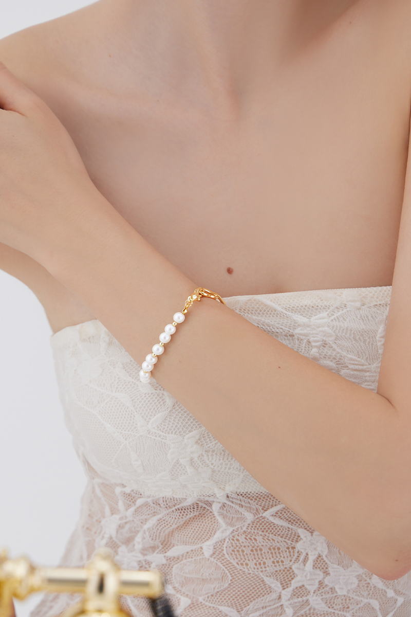 商品名稱: 簡約金屬珍珠手鍊(金)