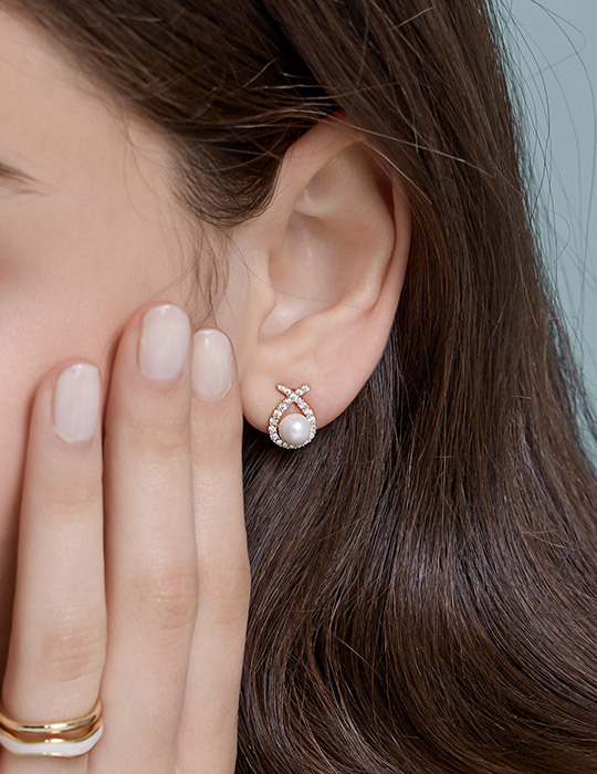 材質:14K金電鍍銅/鋯石/手工珍珠/925銀針