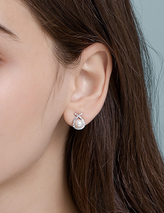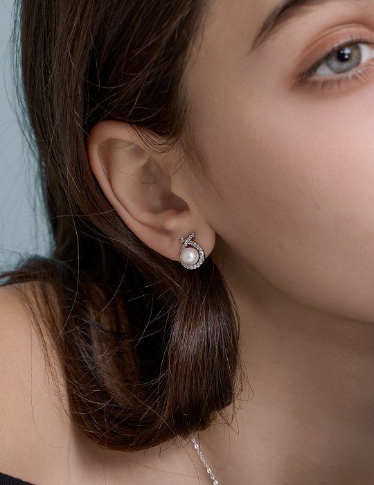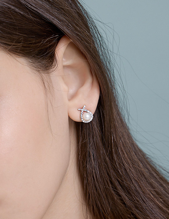簡約閃耀珍珠微語。銀針耳環(銀)