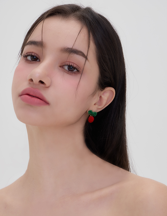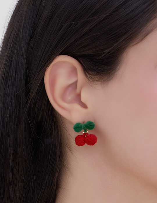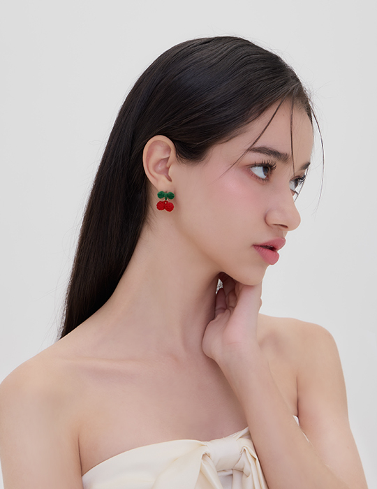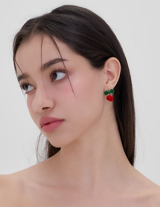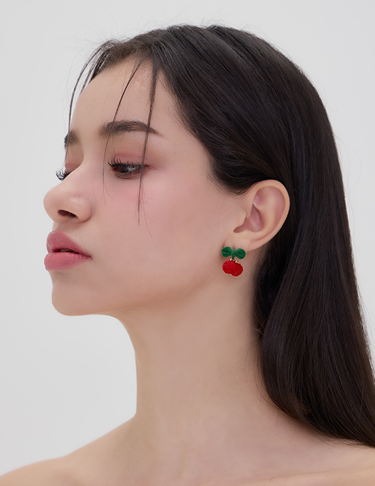商品名稱:紅絲絨小櫻桃。銀針耳環