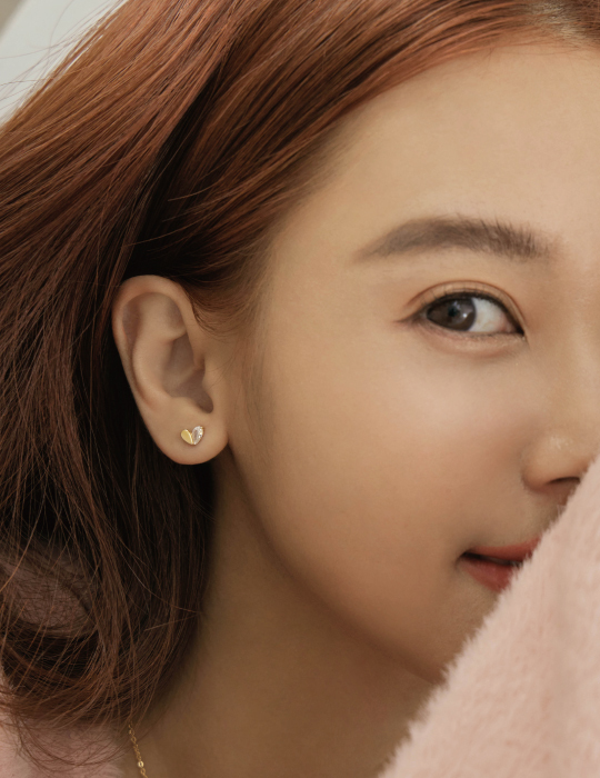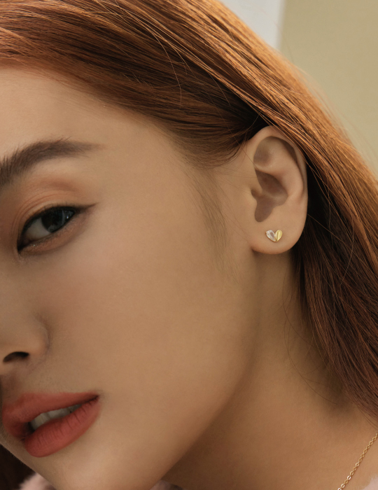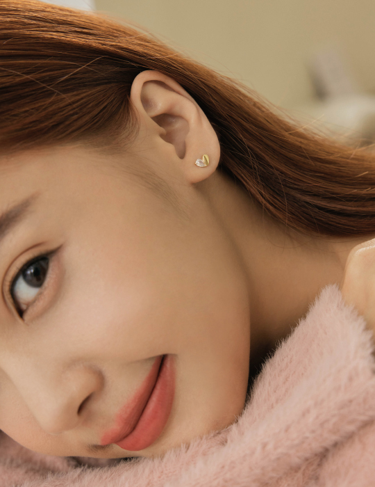 純銀迷你鋯石愛心。銀針耳環