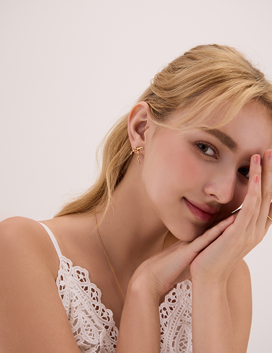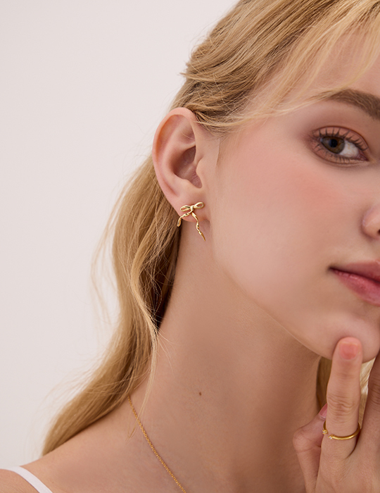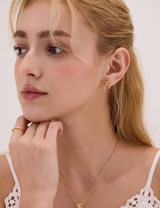 絲帶蝴蝶結。銀針耳環(金)