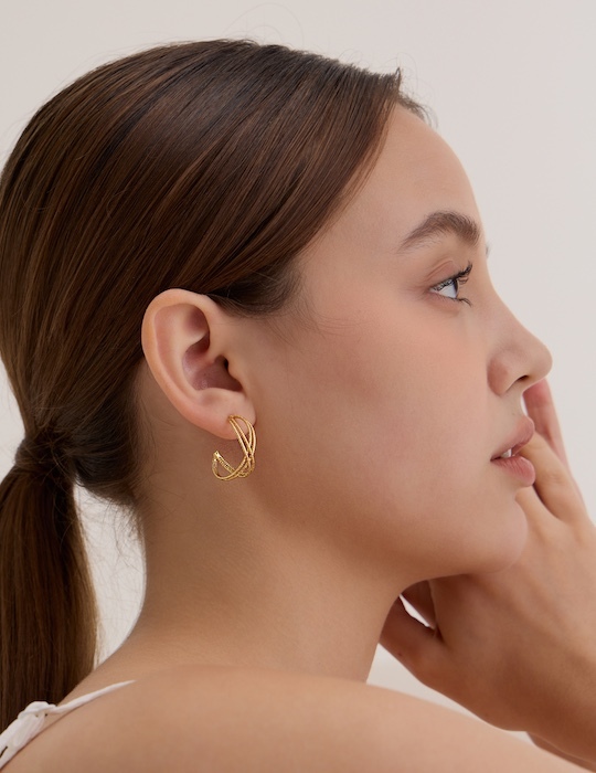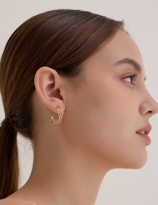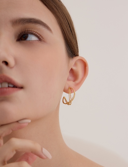 經典交織。銀針耳環(金)